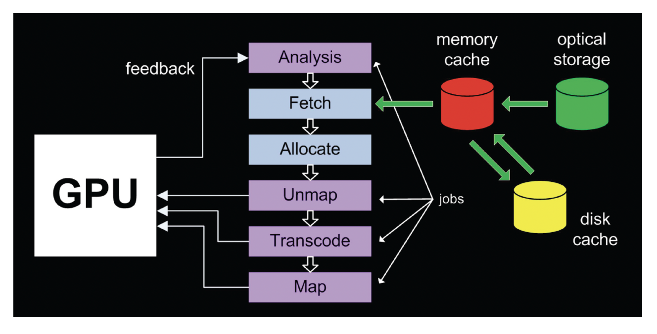 基于 CPU 的缓存管理是在磁盘、主存和显存三者之间来回传输数据。如果直接用这种方式来管理虚拟纹理,那效率显然是不够高的。