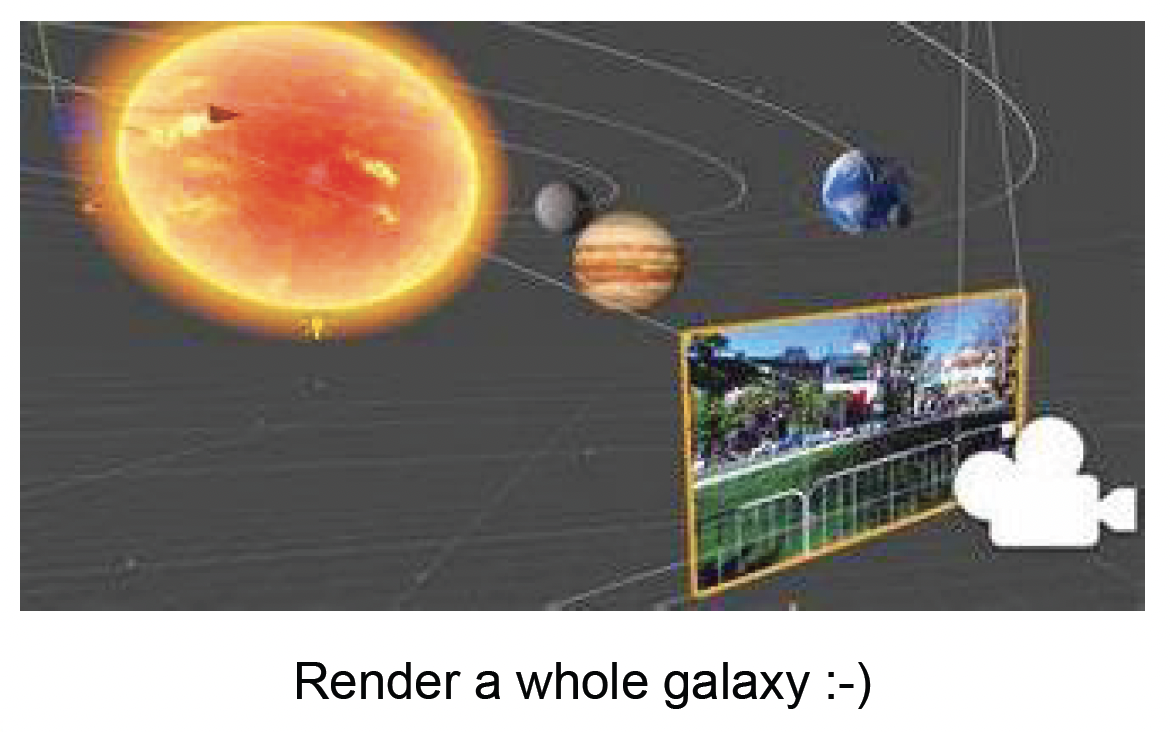 解决方法是采用相机相关渲染(camera-relative rendering)