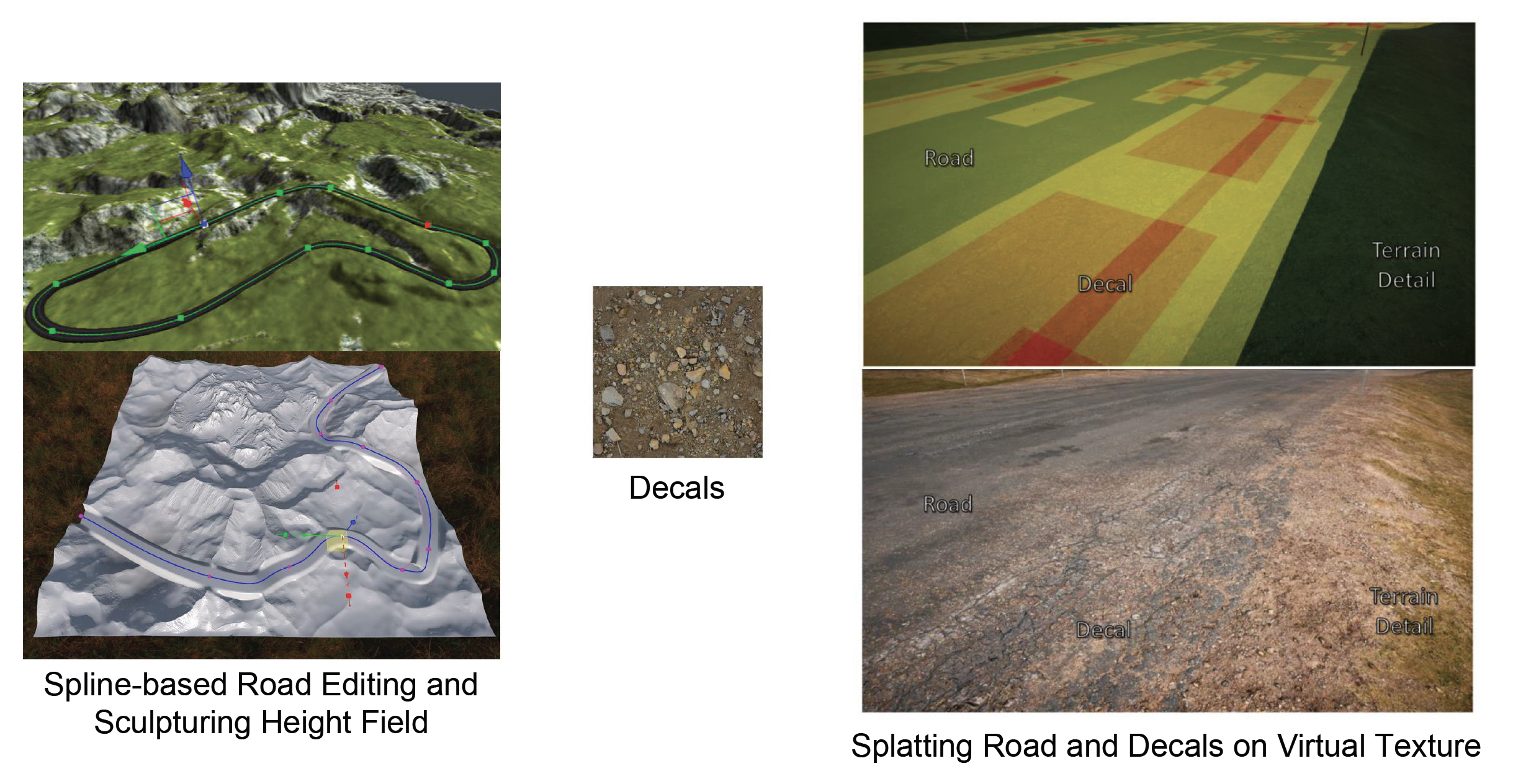 - 当发生物理交互(如轮胎碾压)时,更新一张动态高度偏移贴图