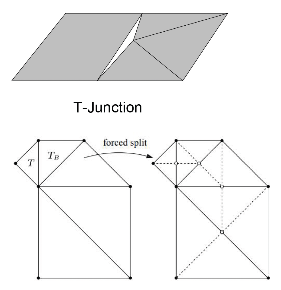 我们可通过强制分裂来解决——如果一个三角形发现其邻居的细分层级比自己高(即邻居在共享边上有中点