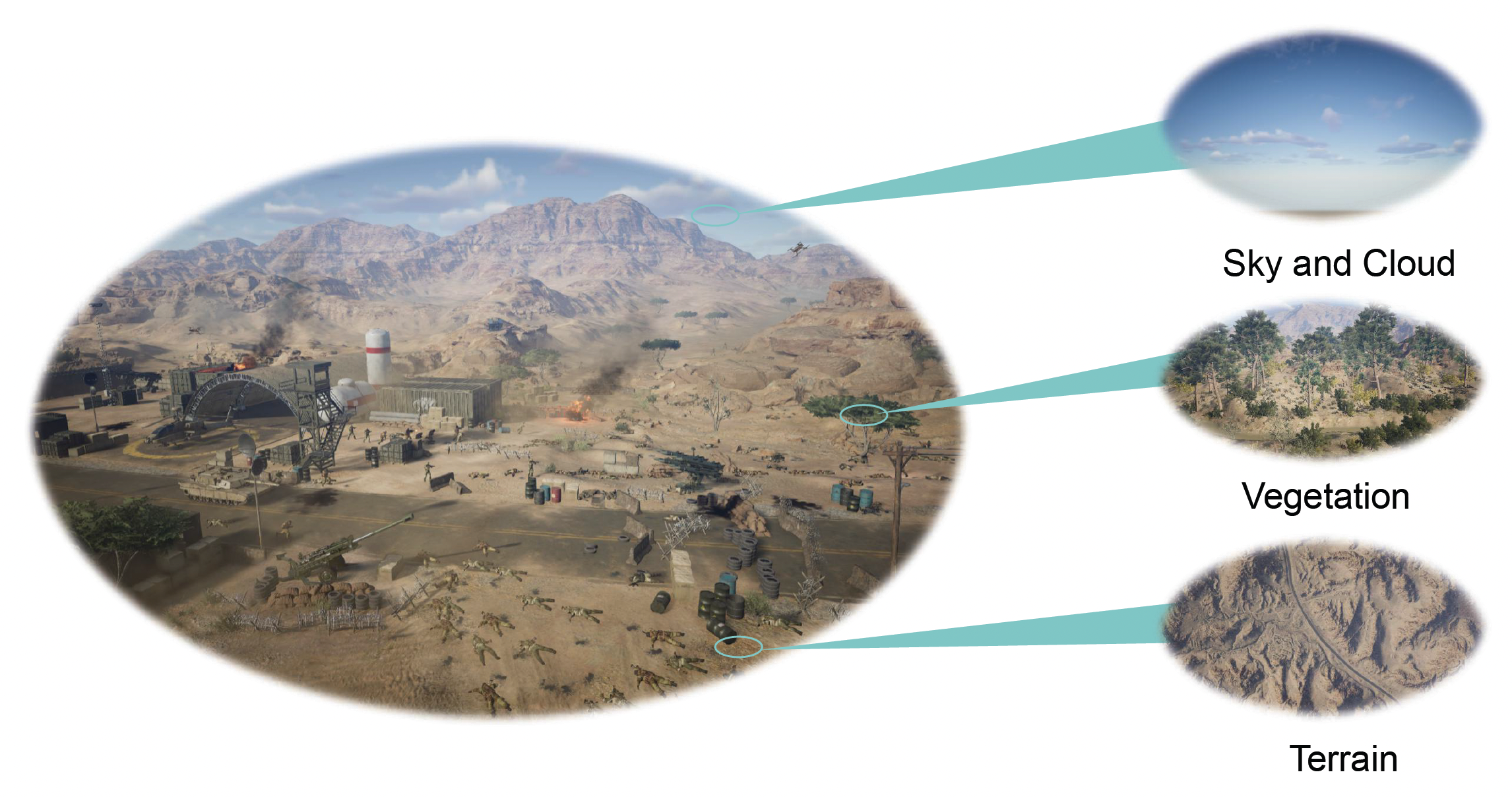 正如本笔记一开始提到过的,游戏中的环境组件可分为以下几个部分: