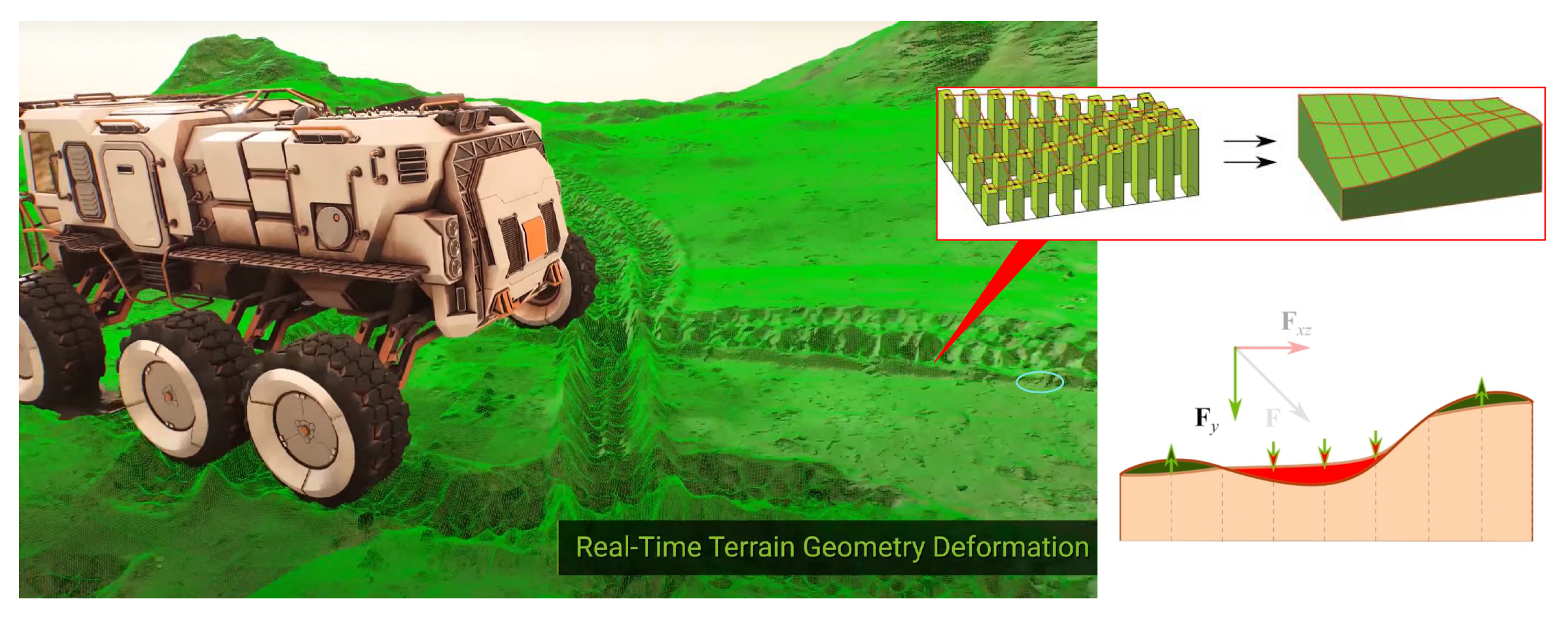 得益于 GPU 实时细分的能力,我们可以实现实时可变形的地形(real-time deformable terrain)。