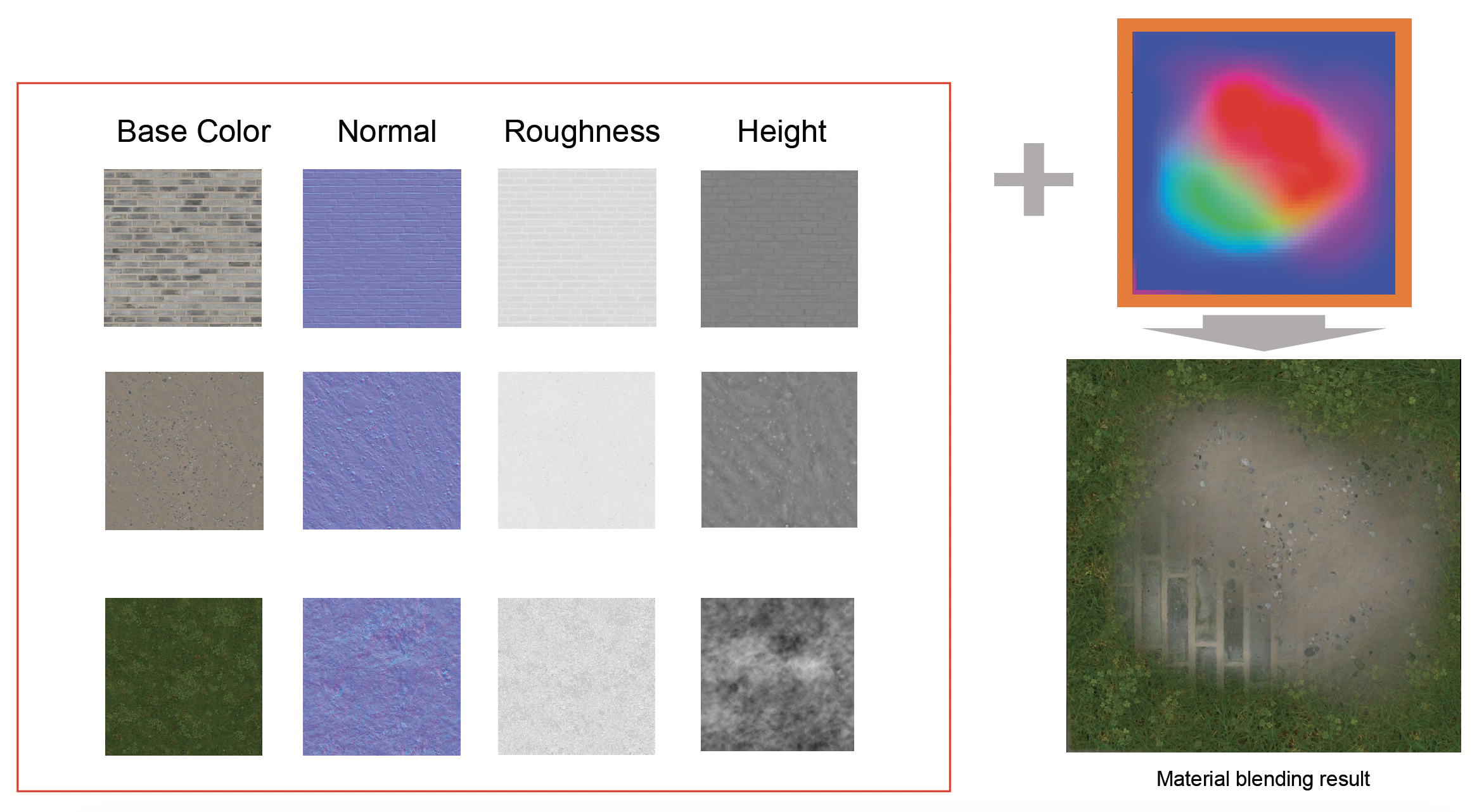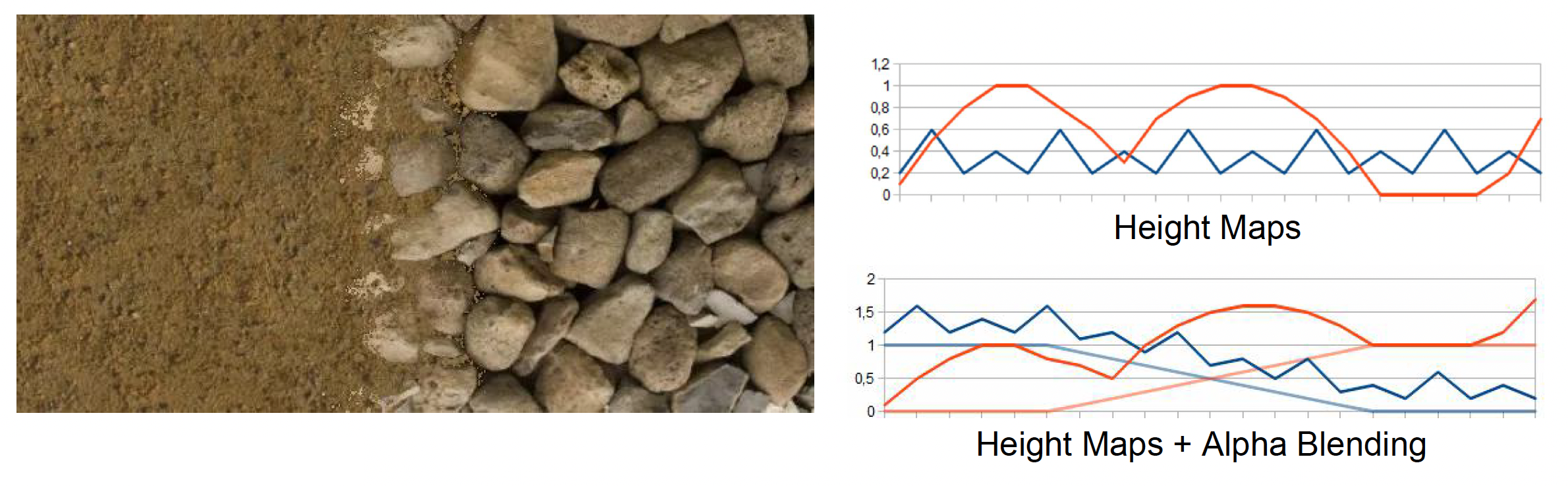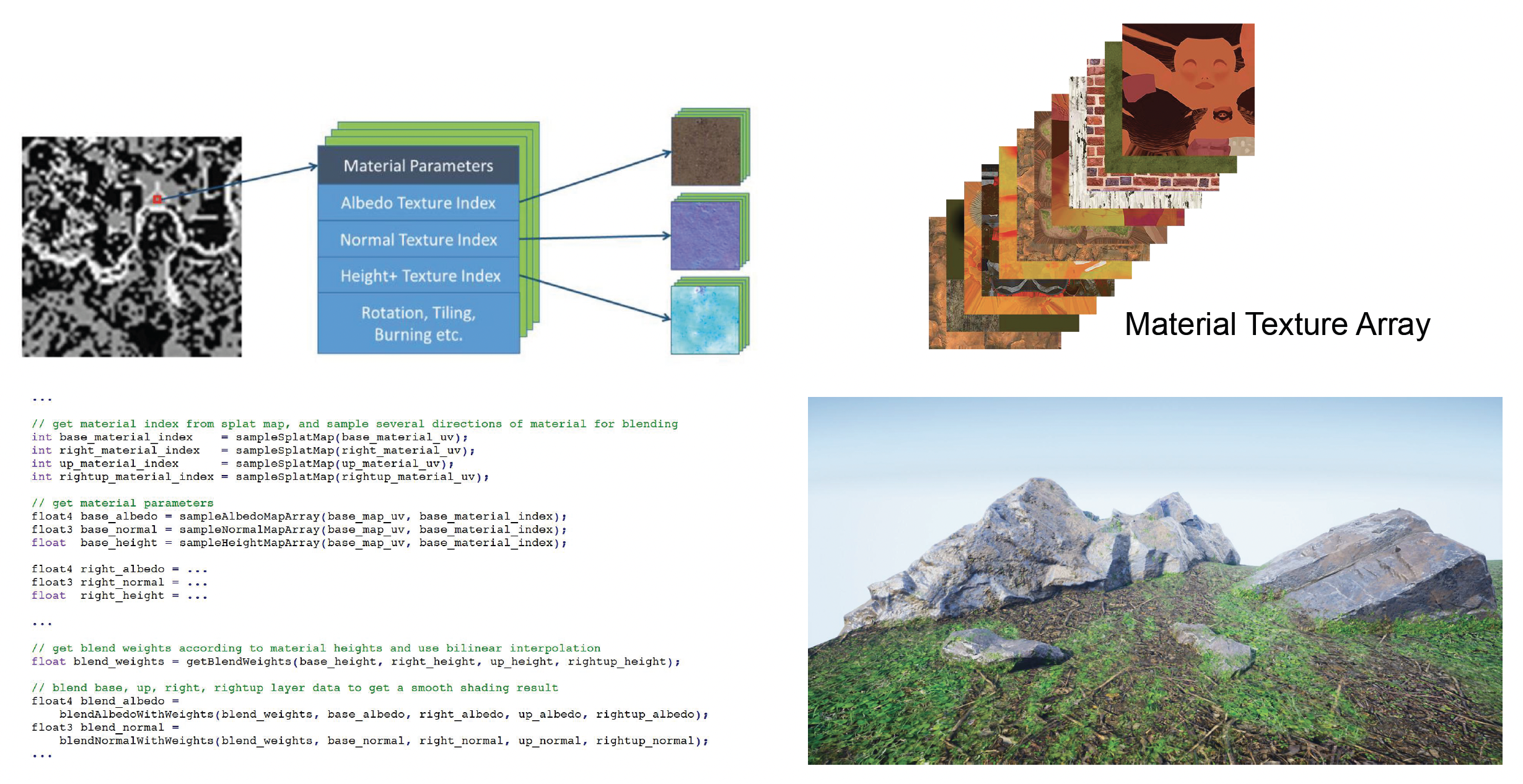 地形材质通常是多种自然材质(草、岩石、泥土、雪)的混合。