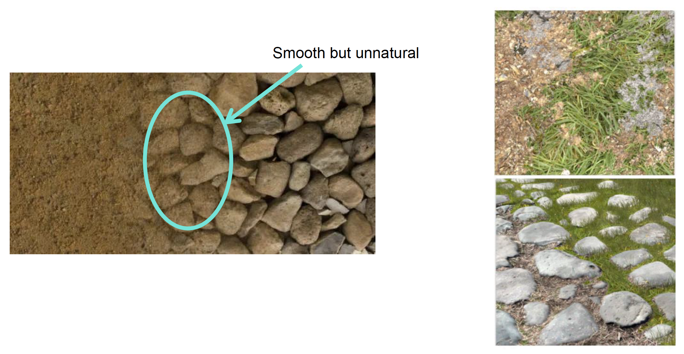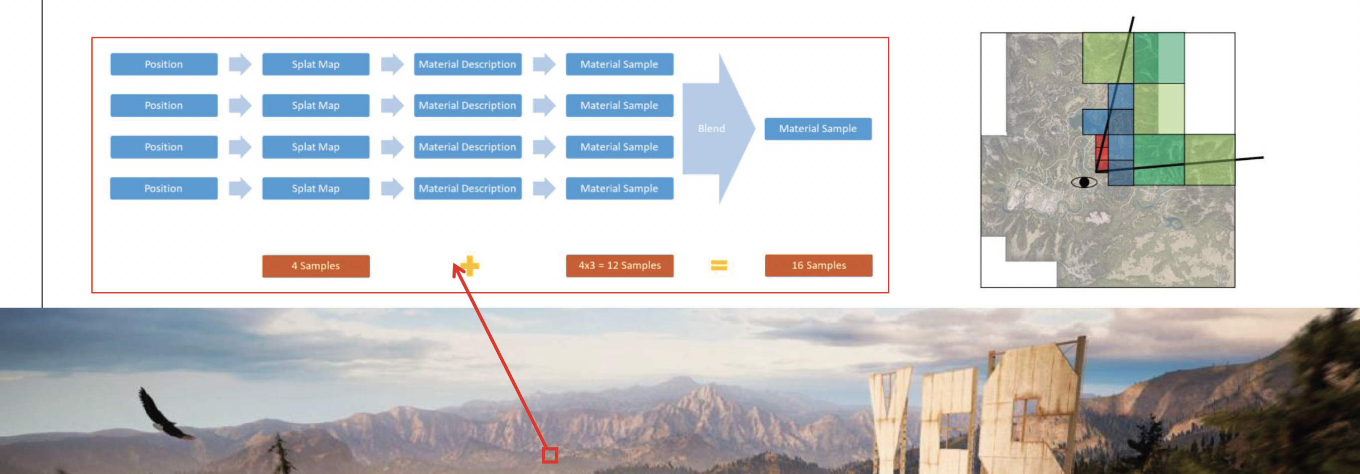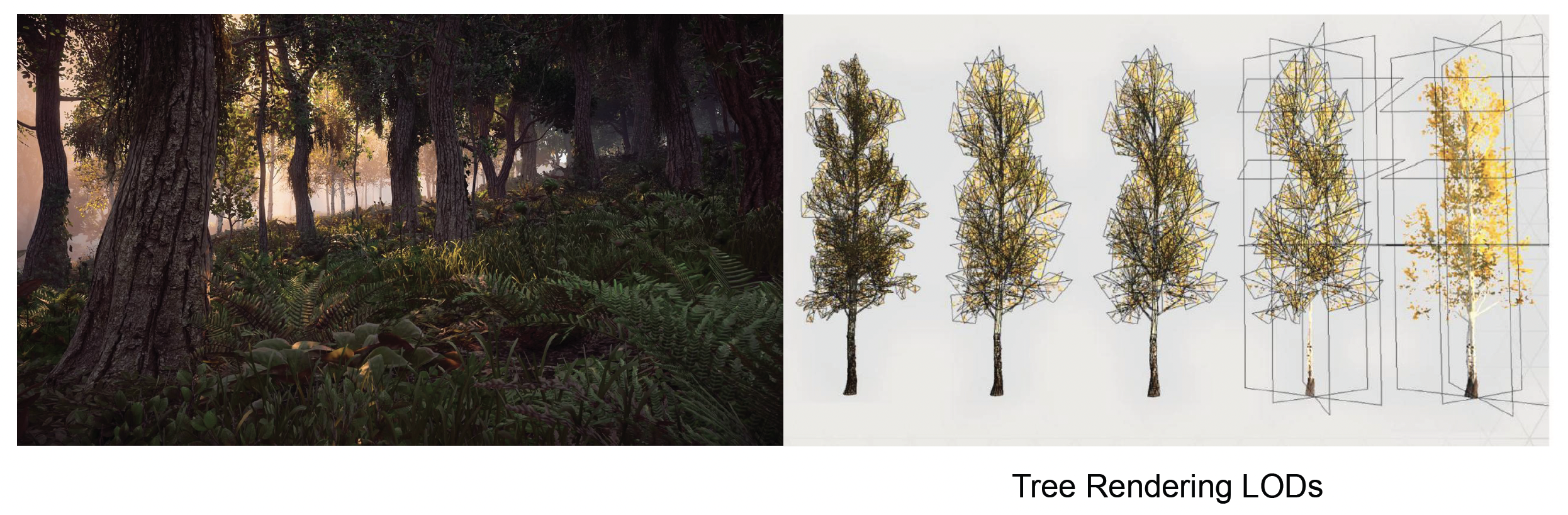 因此若仍然采用传统的网格 + 材质来渲染这样的自然景观,那将是一件相当复杂困难的任务!比如对于一个典型的开放世界游戏,里面可能包含数十甚至上百平方公里的可探索区域,因此三角形数量也将膨胀到一个相当恐怖的,是目前 GPU 无法承受的量级。