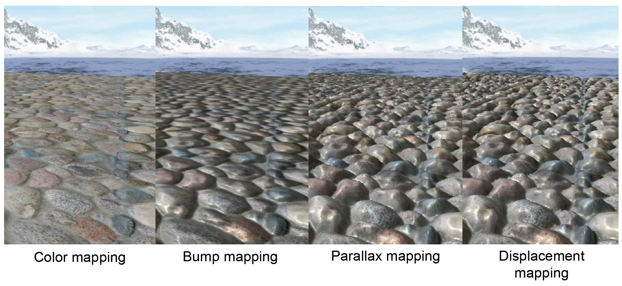 在渲染阶段,引擎通过顶点纹理拾取或在顶点着色器中采样高场图来重建地形几何: