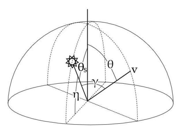 ) ,并利用对称性减少太阳方位维度,从而以 3 个角度参数 + 高度来索引散射值