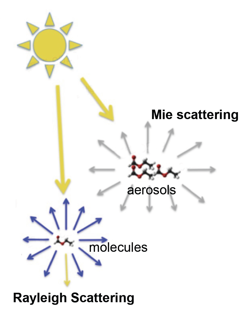 - 散射系数 \(\sigma_s^{\text{Mie}}(\lambda, h) = \dfrac{8\pi^2(n^2 - 1)^2}{3} \dfrac{\rho(h)}{N}\)