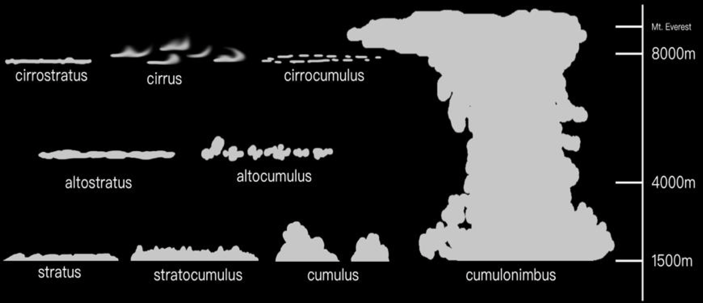 接下来介绍如何绘制云。云的类型大致有三类:层云、积云和卷云。