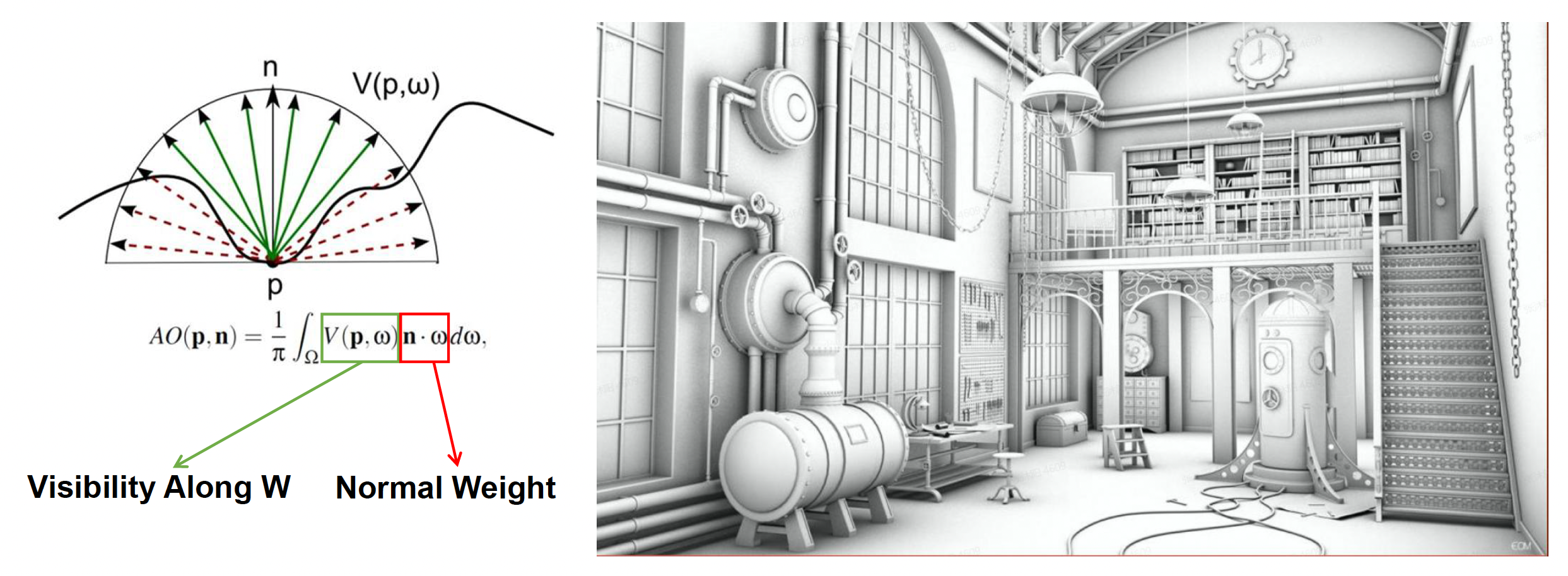 环境光遮蔽(ambient occlusion, AO) 是指由遮挡引起的对环境光衰减的近似。