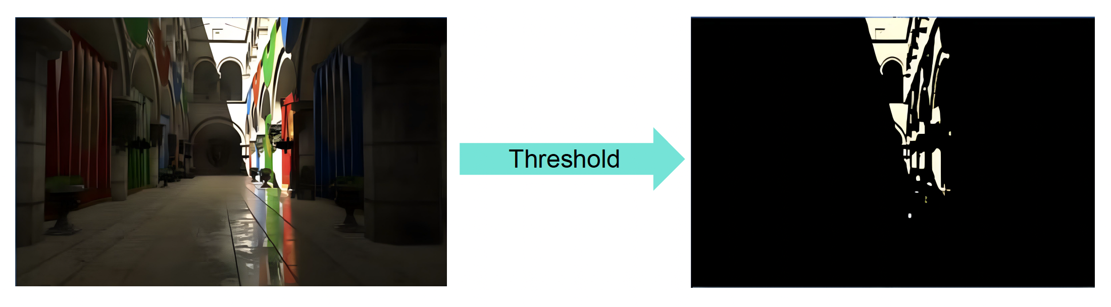 我们不能直接将 HDR 图像放在 SDR 设备上显示,否则就会出现左图所示的过曝和色偏问题。然而,这个问题可以用色调映射(tone mapping) 来解决,它的目的就是将广泛的高动态范围(high dynamic range, HDR) 颜色映射到可以输出的标准动态范围(standard dynamic range, SDR) 的显示器。