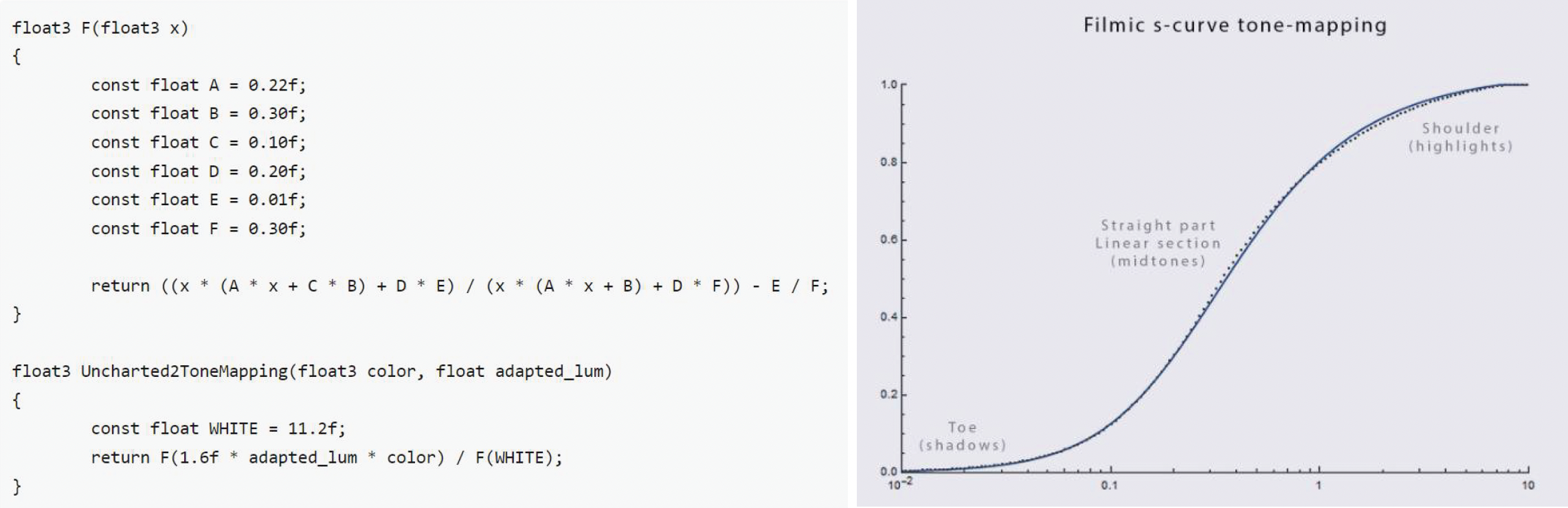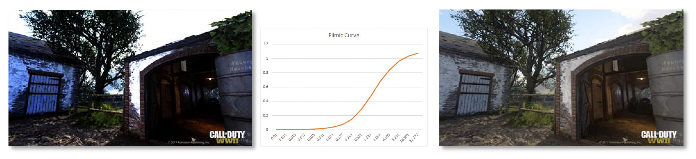 第一种方法是大名鼎鼎的电影曲线(filmic curve)。