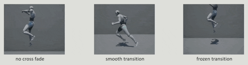 另外一个容易被忽视的问题是:混合的时候还要考虑时间线的对齐。因为动画往往是循环的,而不同动画完成一次循环的时间是不同的,比如跑的动画要比走的动画先完成。所以一般要求动画师制作动画时,除了要保证动画是循环的外,还要确保动作基本一致,比如走的动画左右脚各动一次,那么跑的动画也要左右脚各动一次。之后还要将这两个循环动画的时间归一化,这样便于在时间上对齐这些动画。
