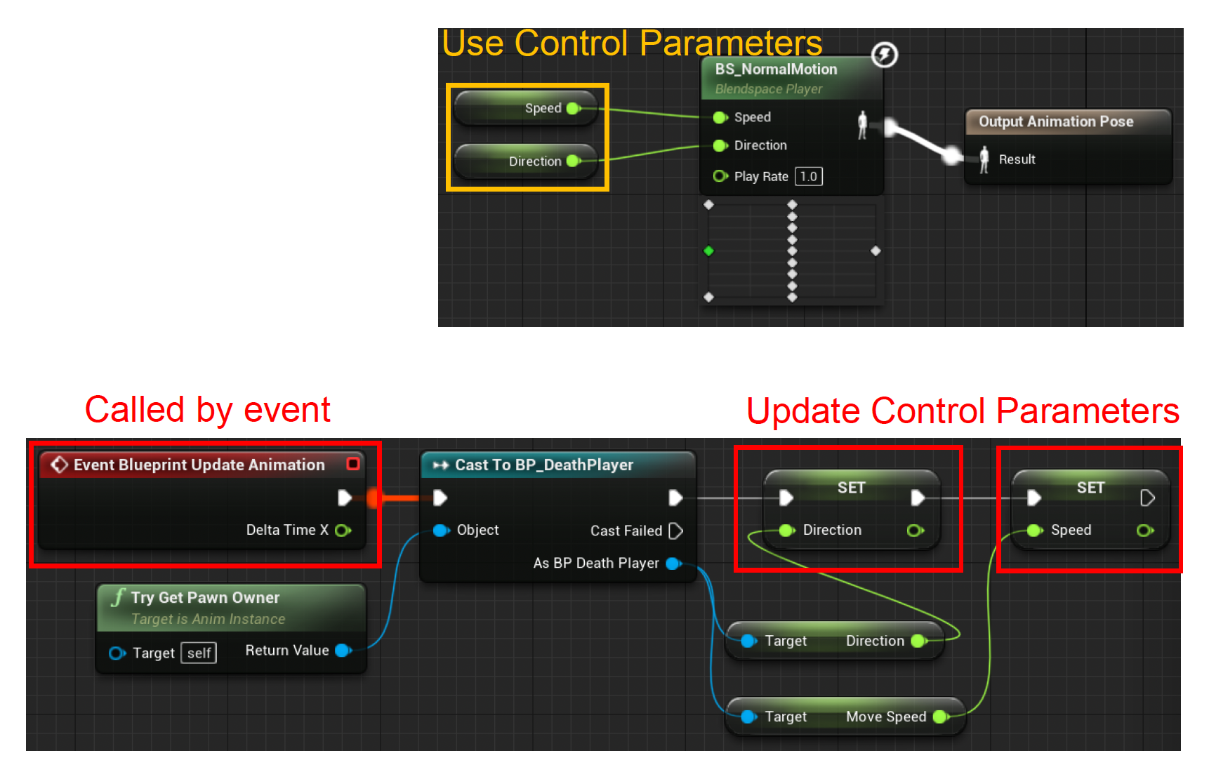 在 UE 的动画蓝图控制中,命名变量是其中的一个成员,不仅能通过蓝图更新,还能被用于混合树内的任何地方。