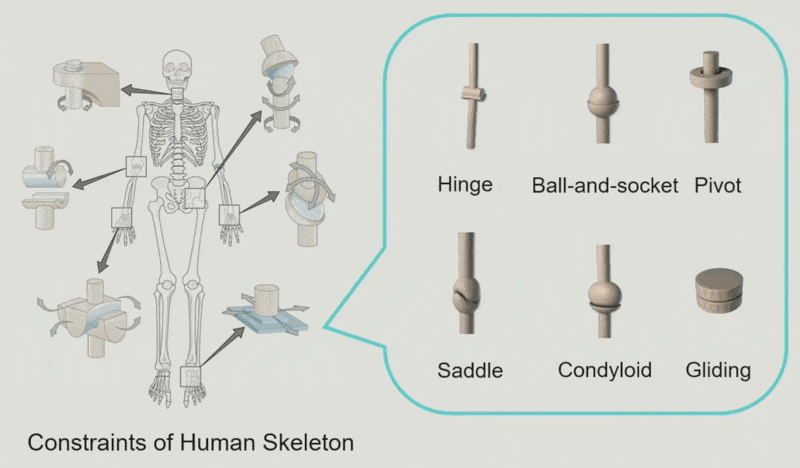 另外得考虑(人体)骨架是有约束的。不是所有关节都能无死角旋转移动的,并且不同的关节有不同的活动范围。