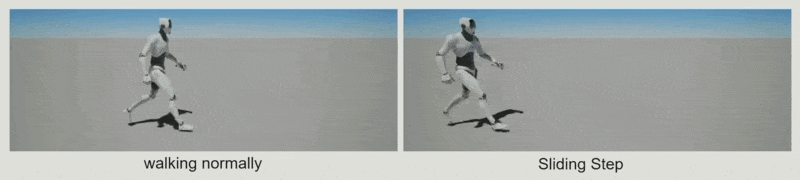如果没有在时间线上对齐,就会出现右图所示的「滑步」问题。
