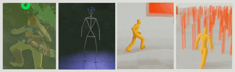 游戏中的 IK 问题还可更加复杂,比如有多个末端执行器。像下面左边第一幅图中,攀爬中的林克需要同时控制的 IK 点有 3-4 个甚至更多。这时候的难点在于:仅用上面的算法只能保证一个点够到,但其他点的位置会受到算法影响而偏来偏去。
