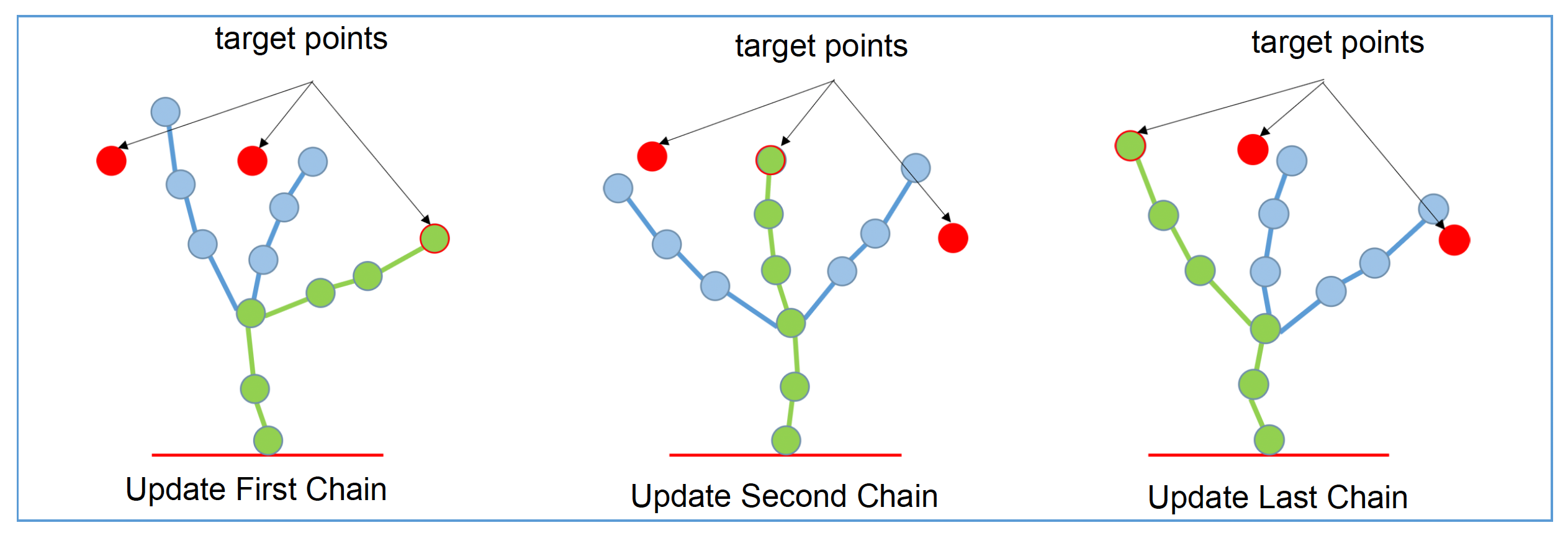 换句话说,如果一根共享骨骼需要被移动,最后更新的末端执行器将获得优先权,而其他骨骼会被拉开。