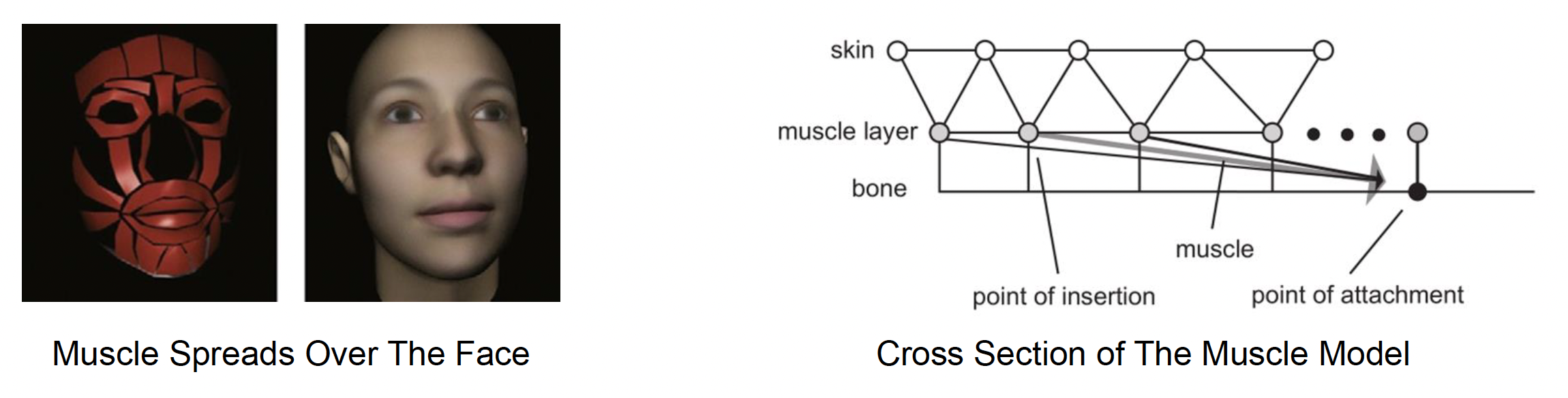 一种更前沿但偏科研性质的技术是肌肉模型动画(muscle model animation)。它基于物理,能实现更精确但更复杂的面部表情。