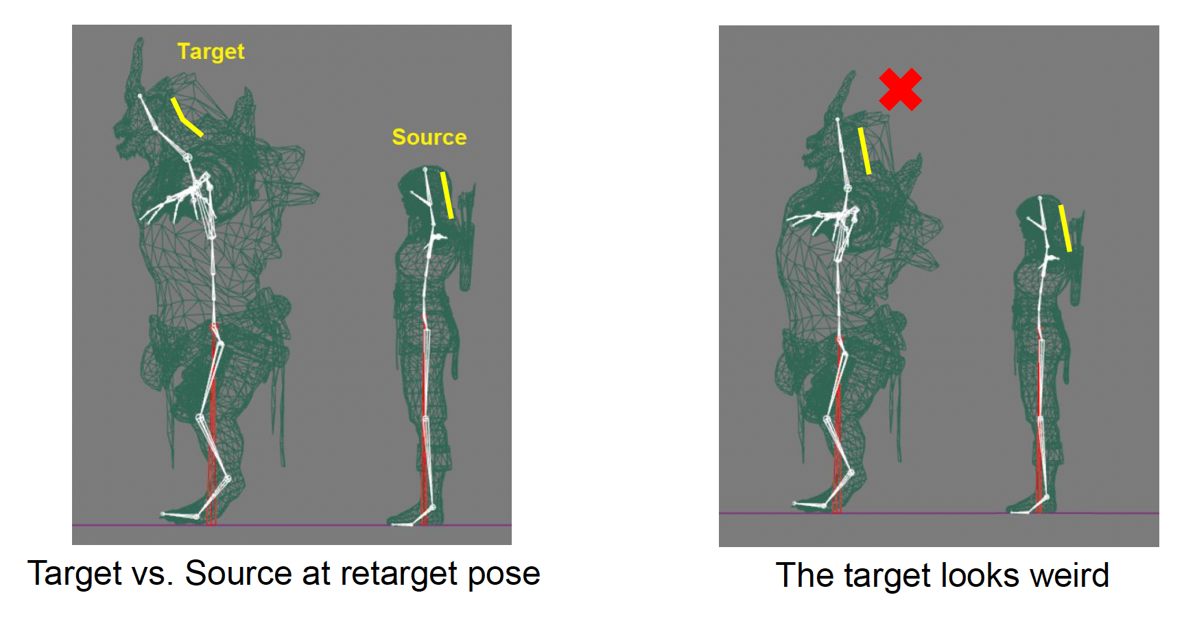但形态动画重定向同样存在一些问题: