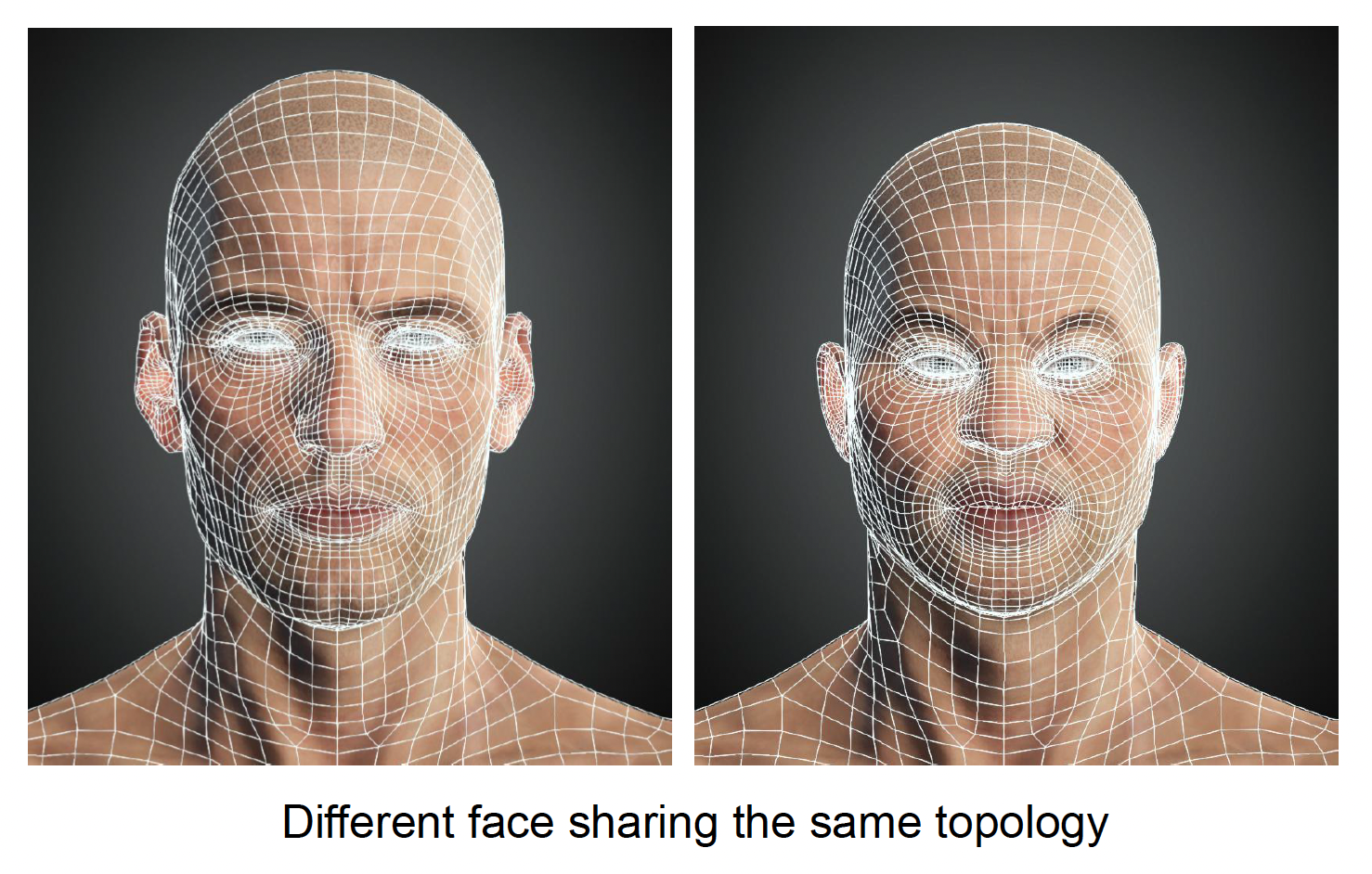动画重定向也可用在面部表情上,因为即便是不同的脸型也有着相同的拓扑结构。