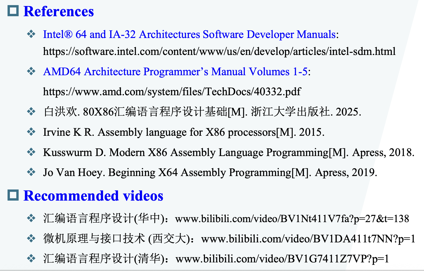 - 教材:Barry B. Brey INTEL Microprocessors 8th Edition(