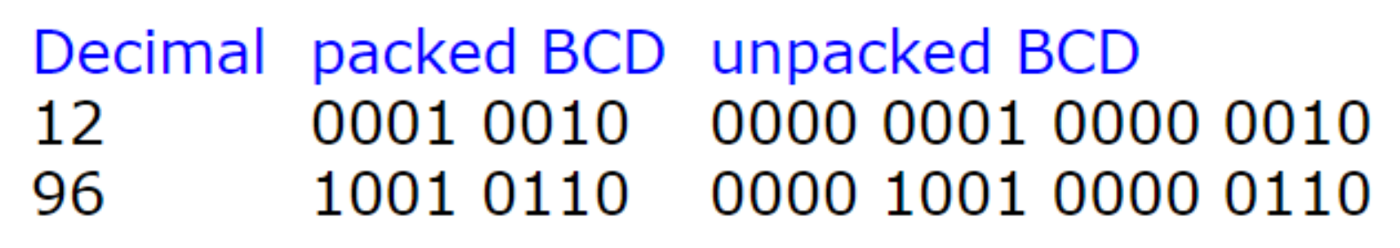 - 如果系统要求做复杂算术,那么 BCD 就很少会用到