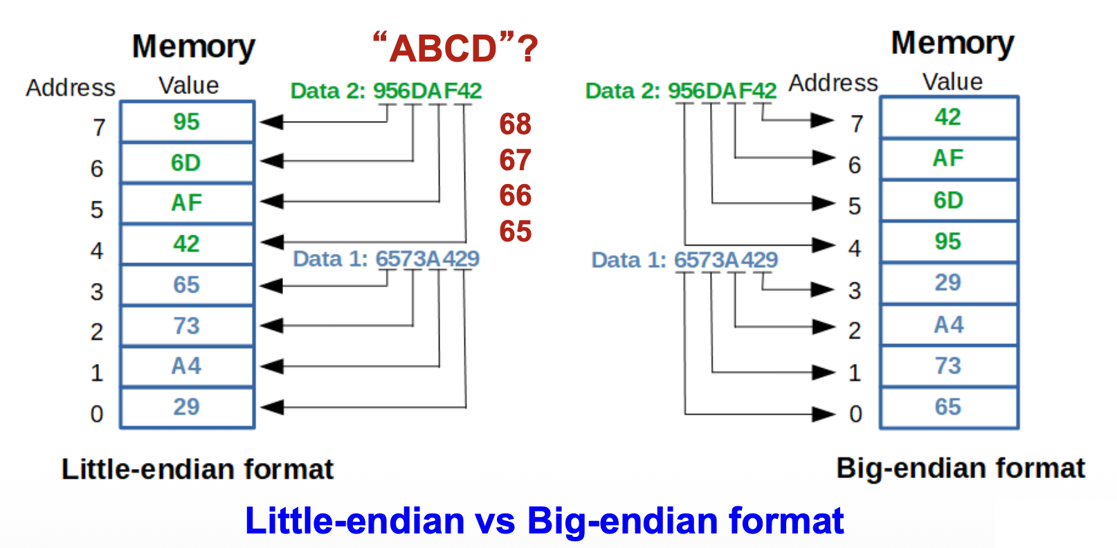 - 低位字节存储在低内存地址上,高位字节则存储在高地址上