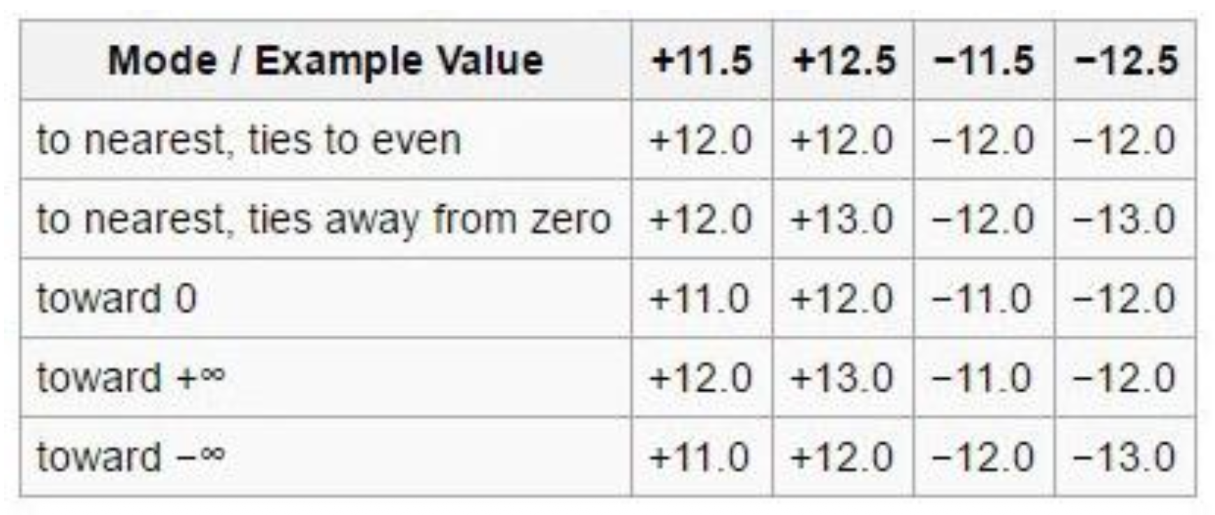 - 可选:roundTiesToAway, roundTowardZero, roundTowardPositive, roundTowardNegative