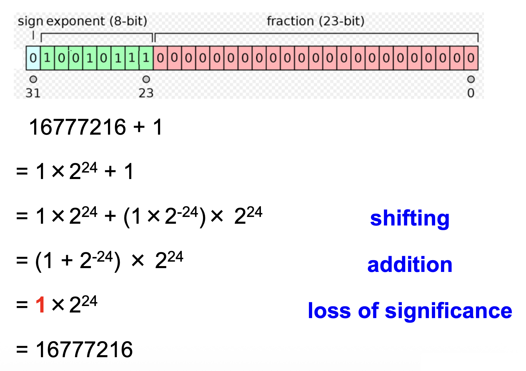 - 偏移指数(biased exponent):偏移量加在指数上,方便比较指数;全 0 和全 1 代表特殊值