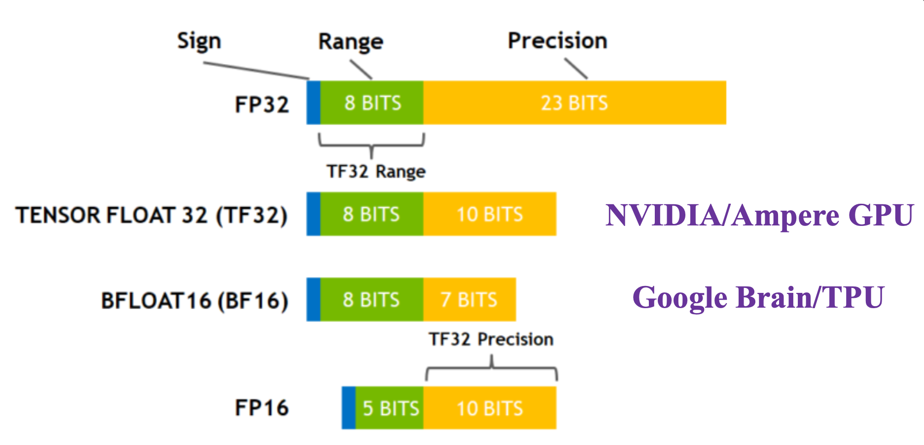 为了加速 AI 训练和推理,一些新的浮点数格式被引入,比如: