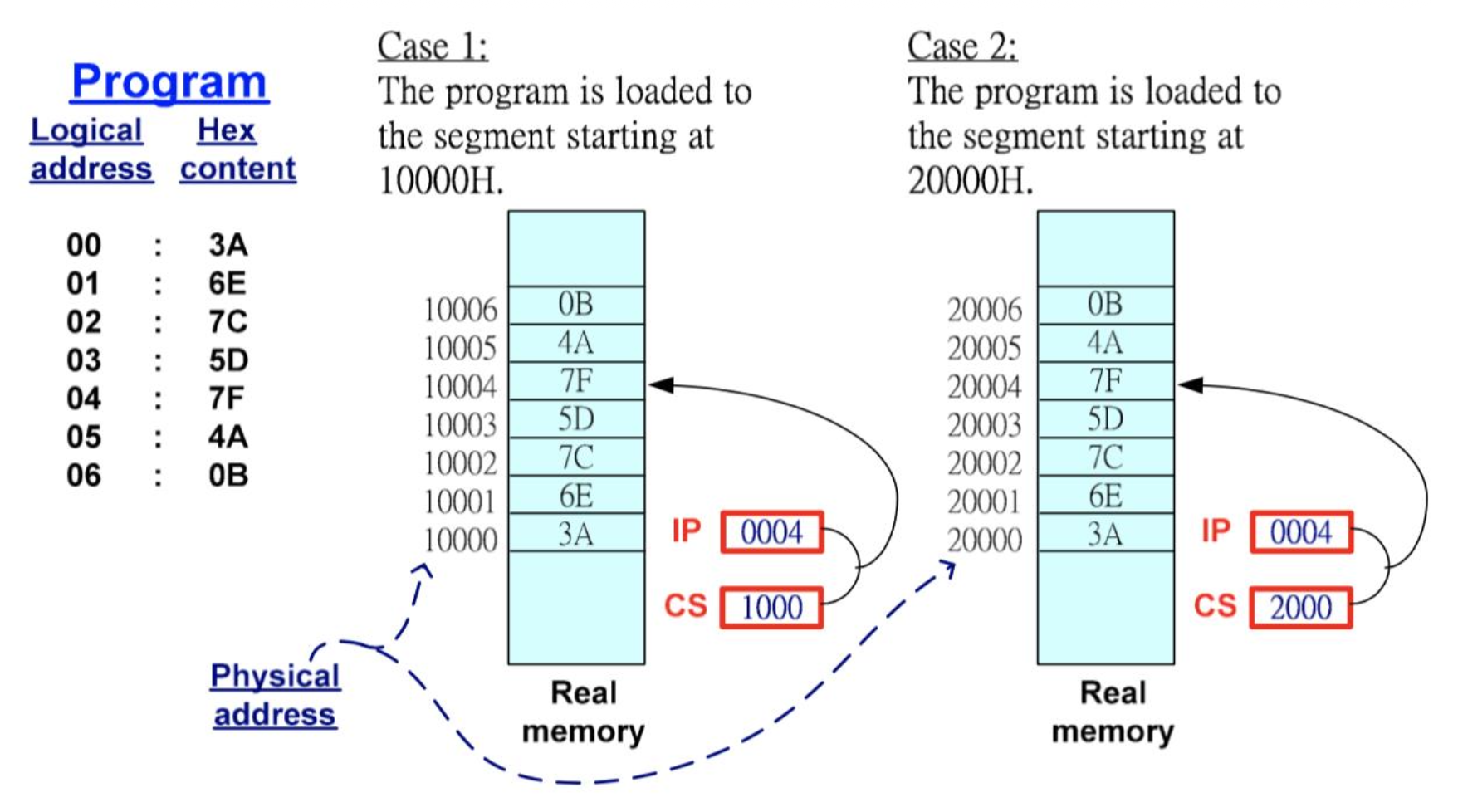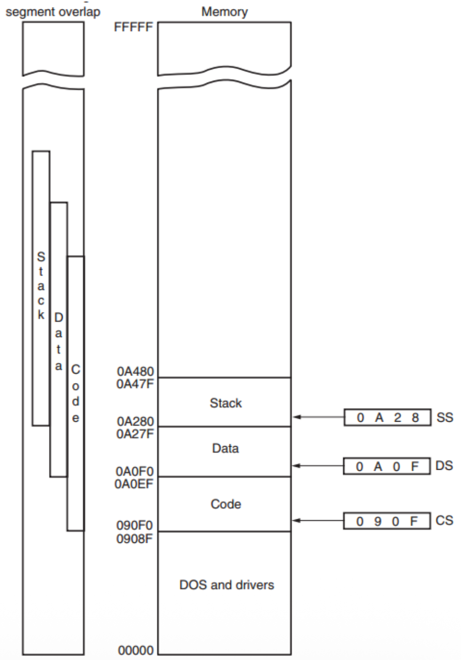 - CS(代码 (code))段存放微处理器使用的代码(程序 (program) 和过程 (procedure))