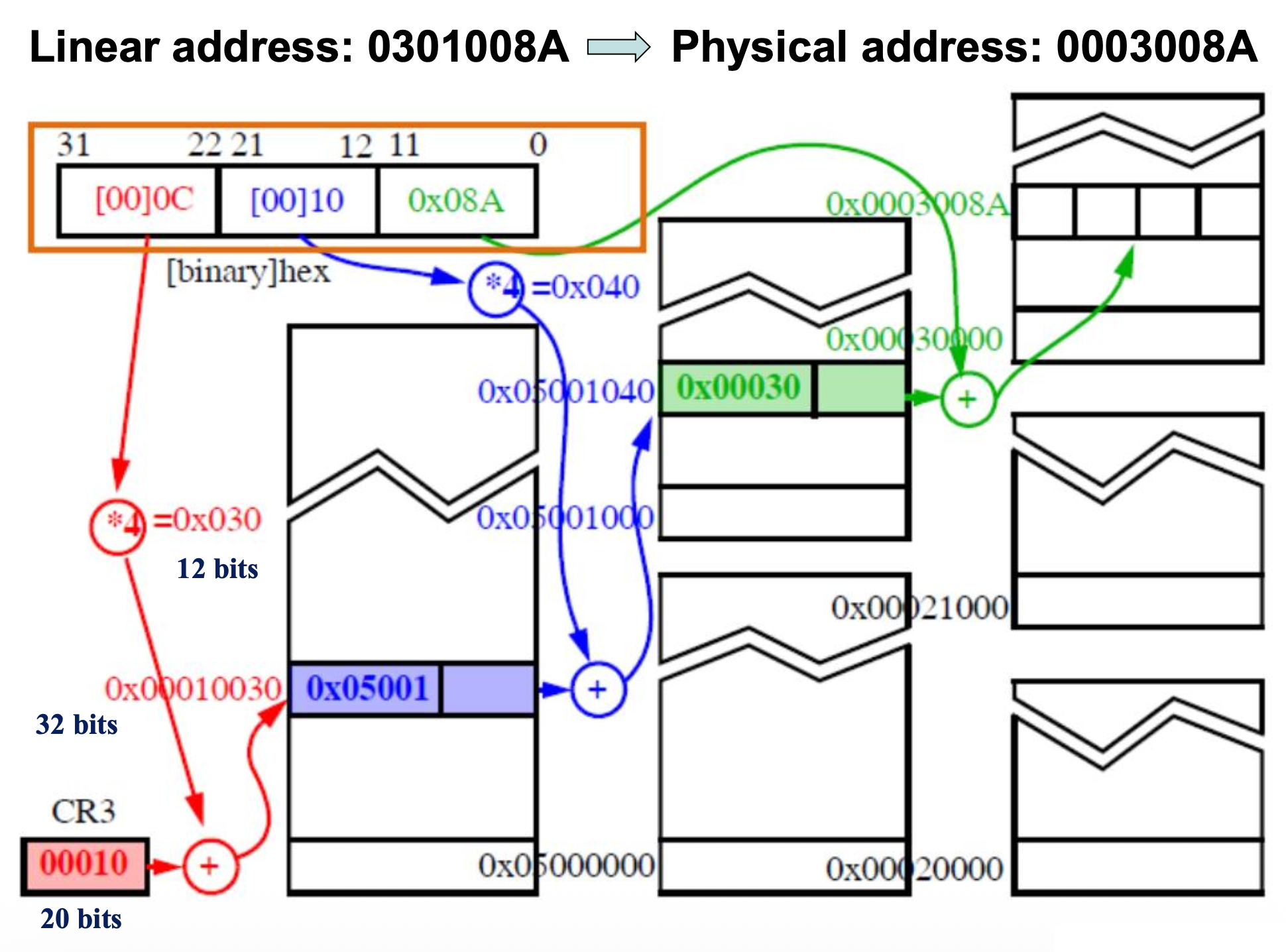 - 32 位分页:将 32 位线性地址转换为 40 位物理地址
