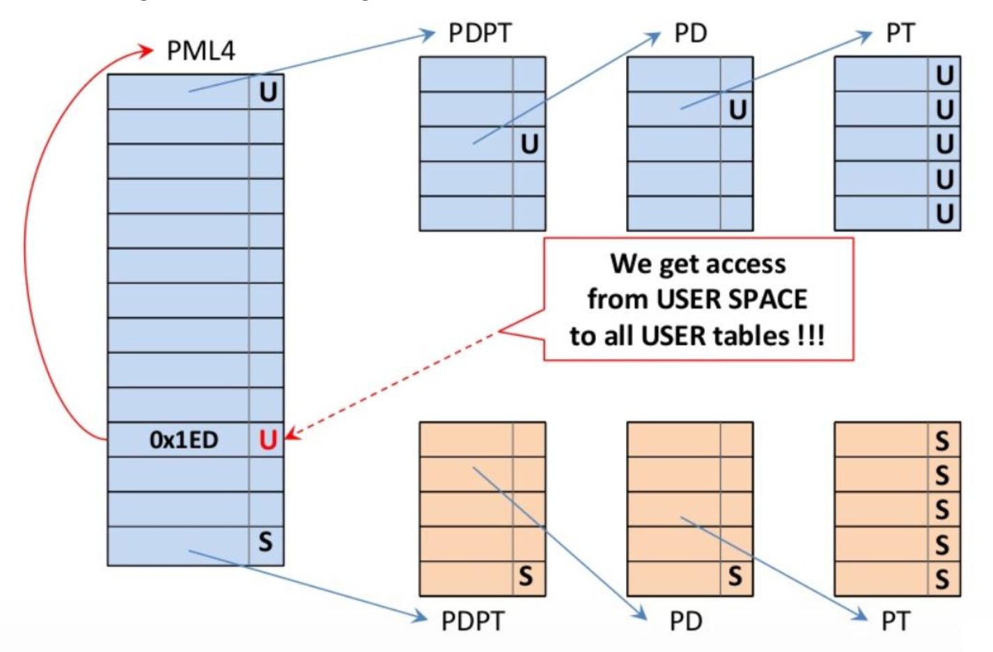 这意味着任何用户模式进程都被授予查看和修改 PML4 页表的权限