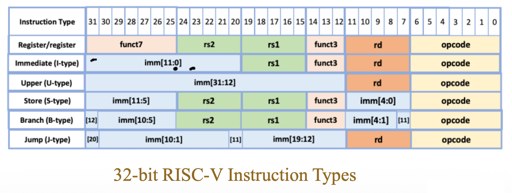 • RISC 架构(例如,RISC-V、ARM)中,由于不支持多种寻址模式,指令格式采用固定位置来表示源操作数和目的操作数,这样数据流向就内在地通过指令格式中操作数的位置来编码
