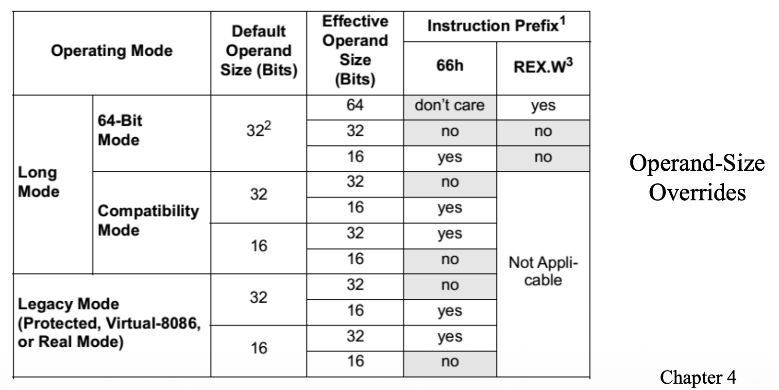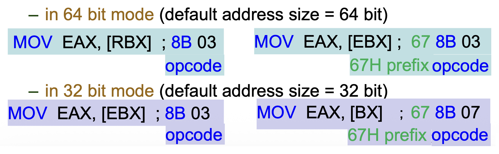 • 16 位模式(实模式、vm86、保护模式:默认地址和操作数大小为 16