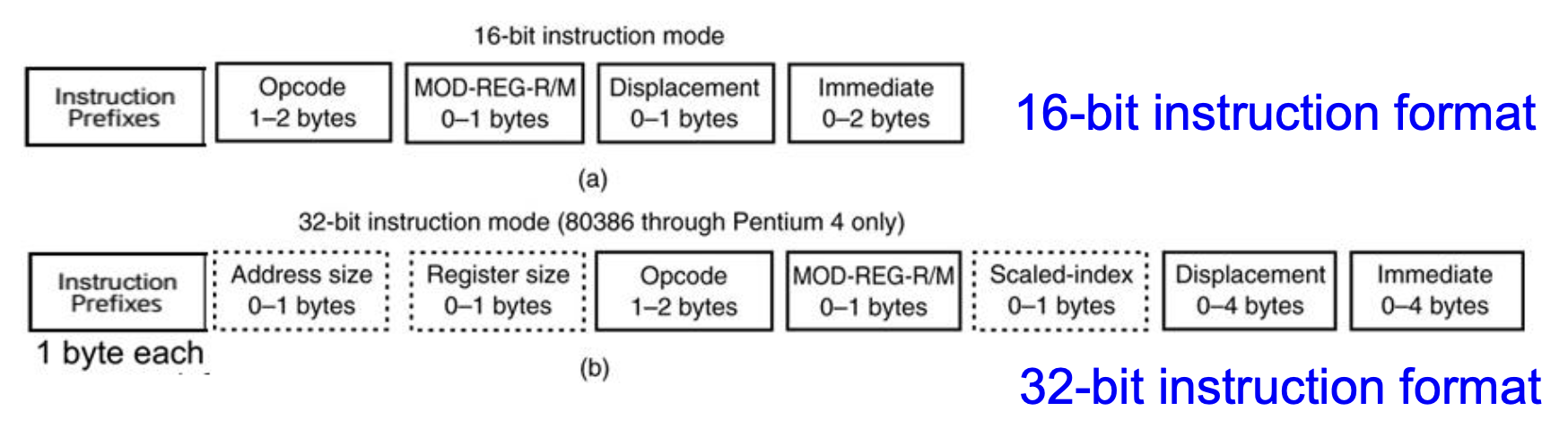 • 因为指令本质上是字节串,所以它们能在任何内存地址上起始