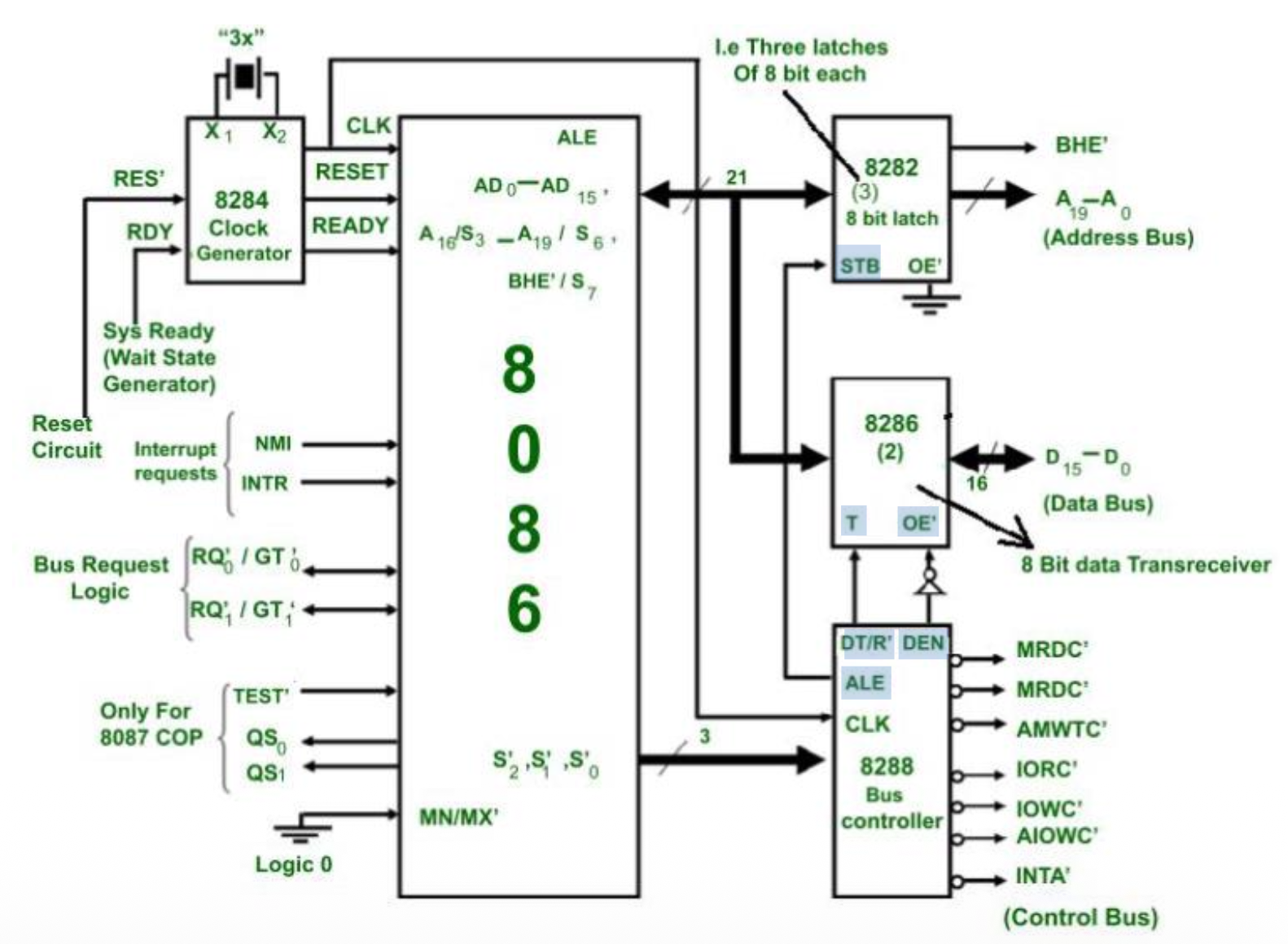 • 一些控制信号必须由外部生成(需要外部总线控制器 8288