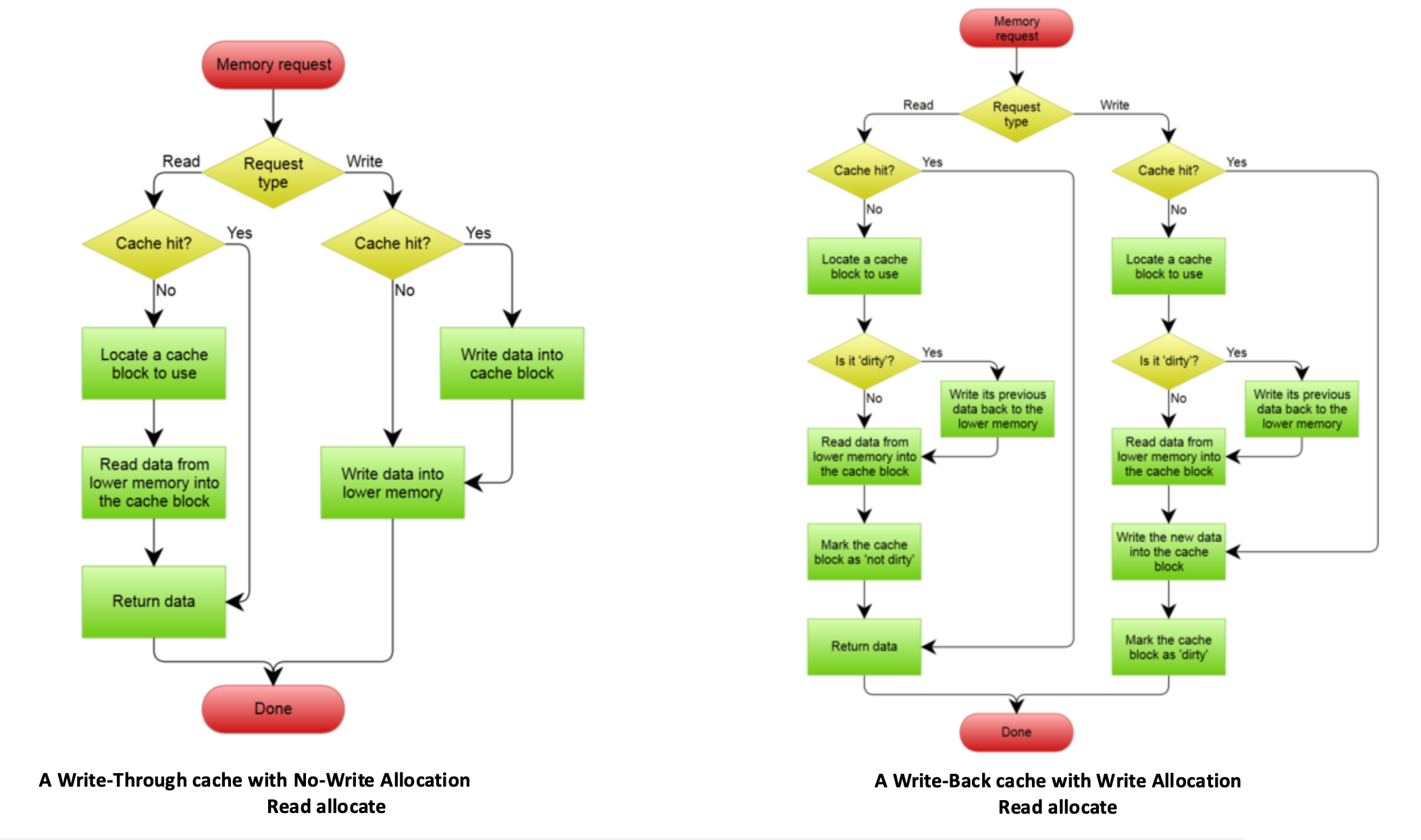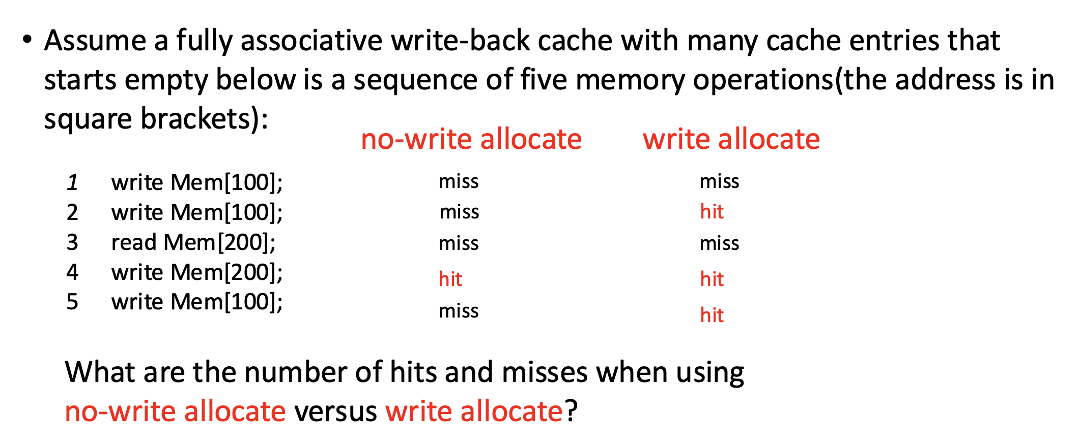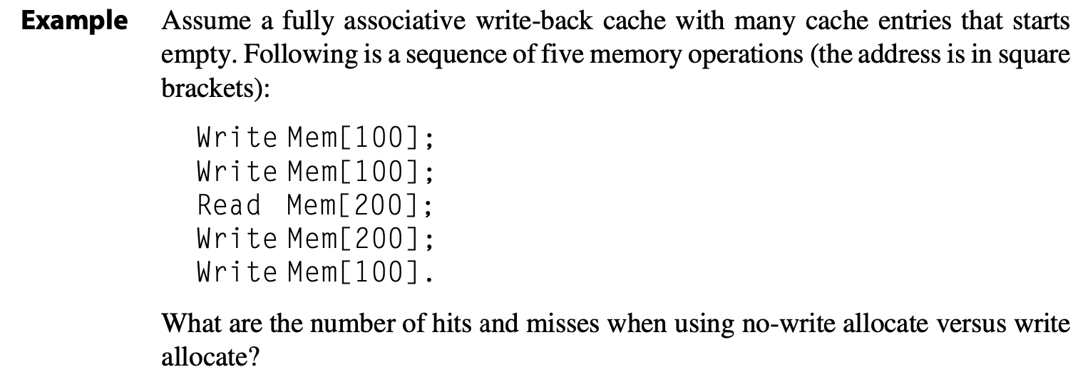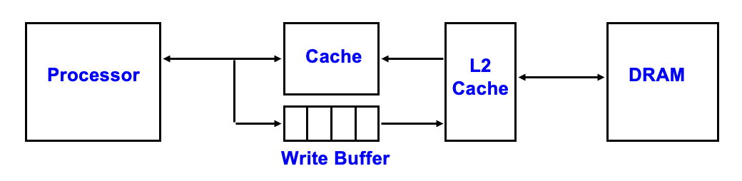 - 理由:内存和处理器访问时间的巨大差异,所以不可能使用写穿策略