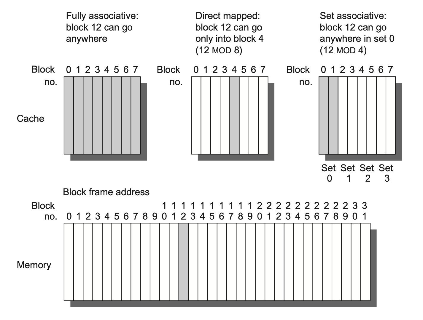 - 块置放:直接映射、全相联、组相联