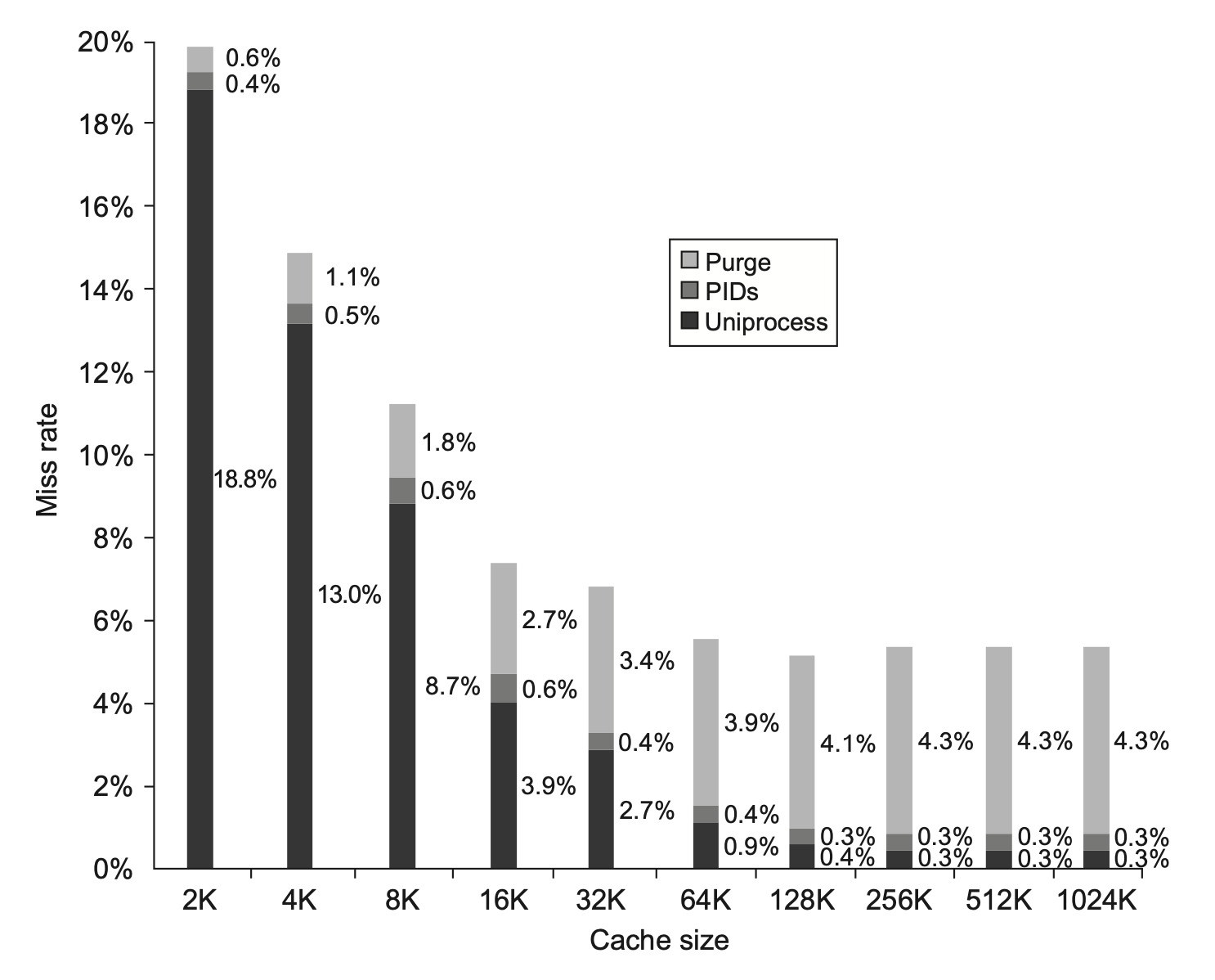 我们也可以做到“鱼和熊掌兼得”——采用多种页大小。最新的处理器开始支持多种页大小的选择,主要因为更大的页大小减少 TLB 内的项数,从而减少 TLB 失效的次数(对于某些程序,TLB 失效对 CPI 的影响和高速缓存失效差不多大