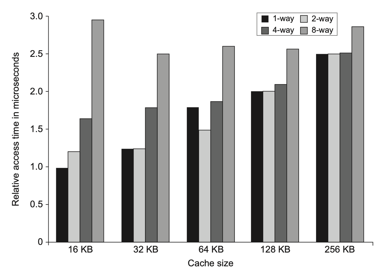 - 优化:组相联高速缓存通过增加块数和动态功耗来减少访问时间。