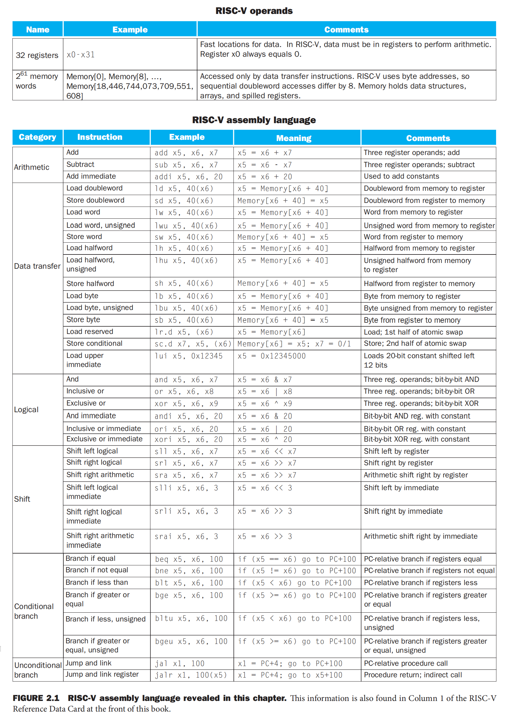 本章将会介绍的 RISC-V 中各种操作数和指令