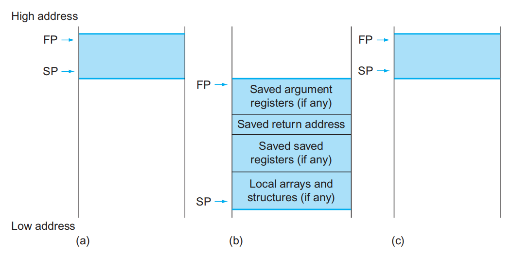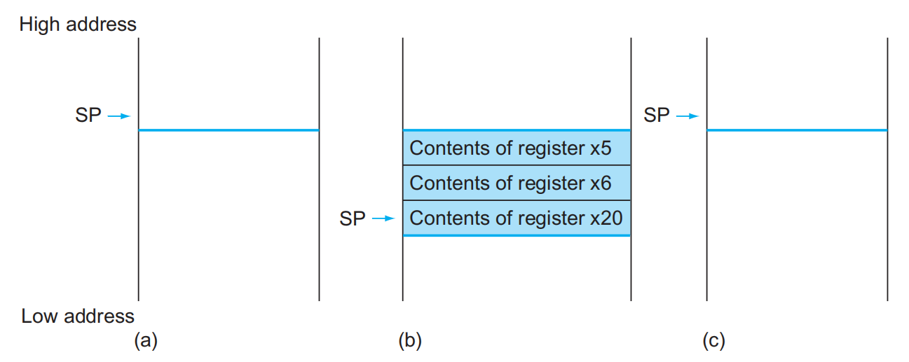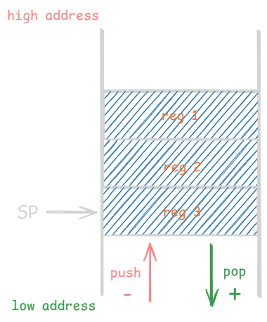 • 对寄存器进行初始化操作,并将栈指针指向第一个空闲的位置上
