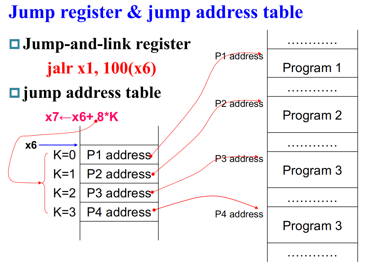 • RISC-V 仅仅比较两个寄存器的大小,而 RISC-V 还会用一个寄存器存储比较结果(1 0,对应真值)