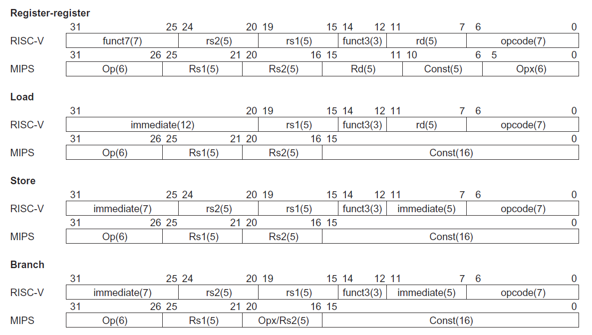 比较 RISC-V MIPS 的指令格式: