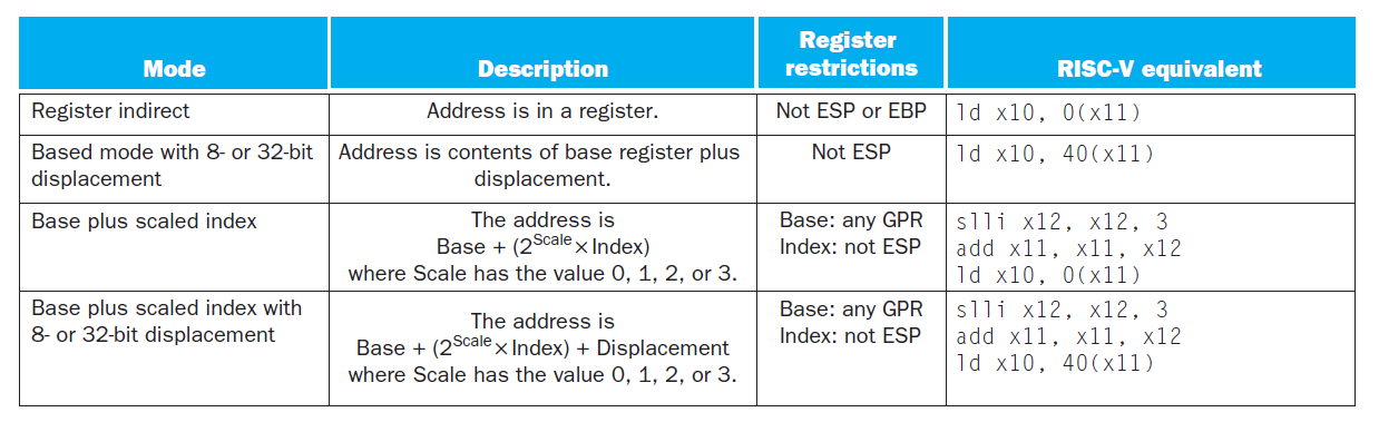 x86 指令与 RISC-V 的不同之处在于: