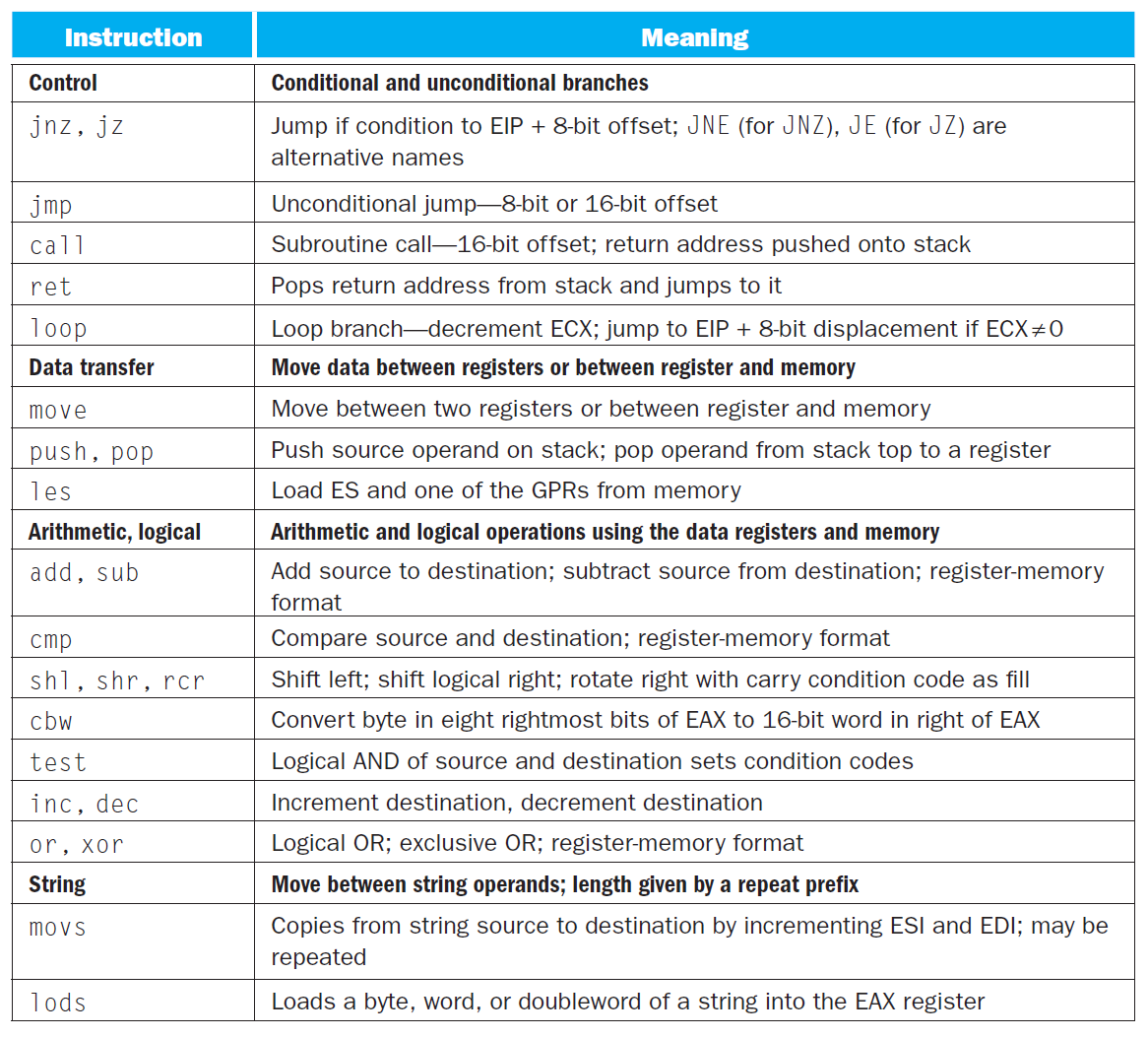 由于 x86 有很多很多的版本,这里我们主要介绍的是 80386 指令集。