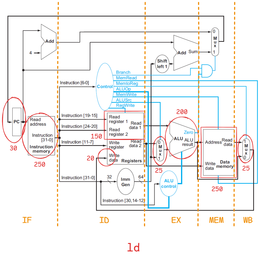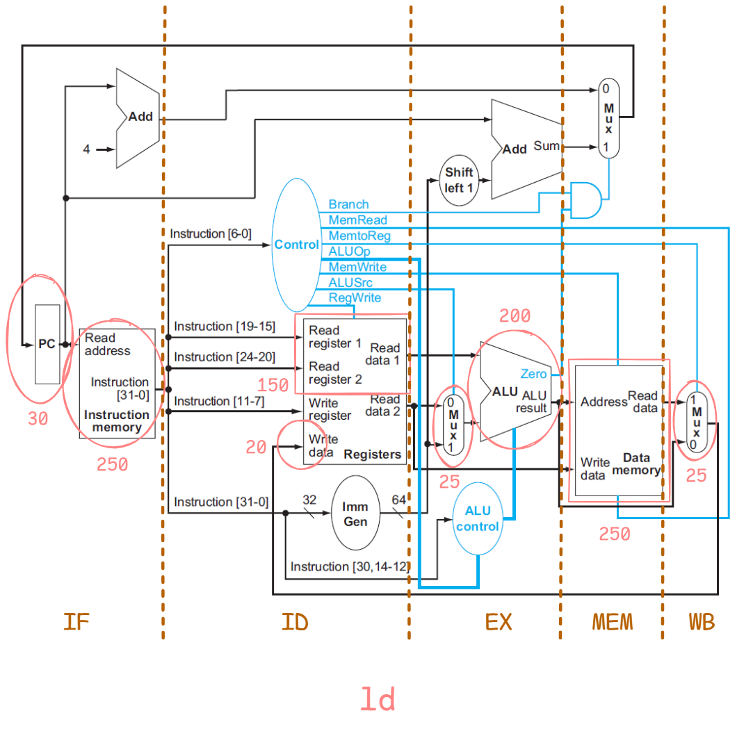 ) ,从指令内存中获取当前周期下需要执行的指令 - 译码 (ID):根据指令的字段识别指令类型,并从单个或多个寄存器内读取数据(load 指令只需读取一个寄存器即可