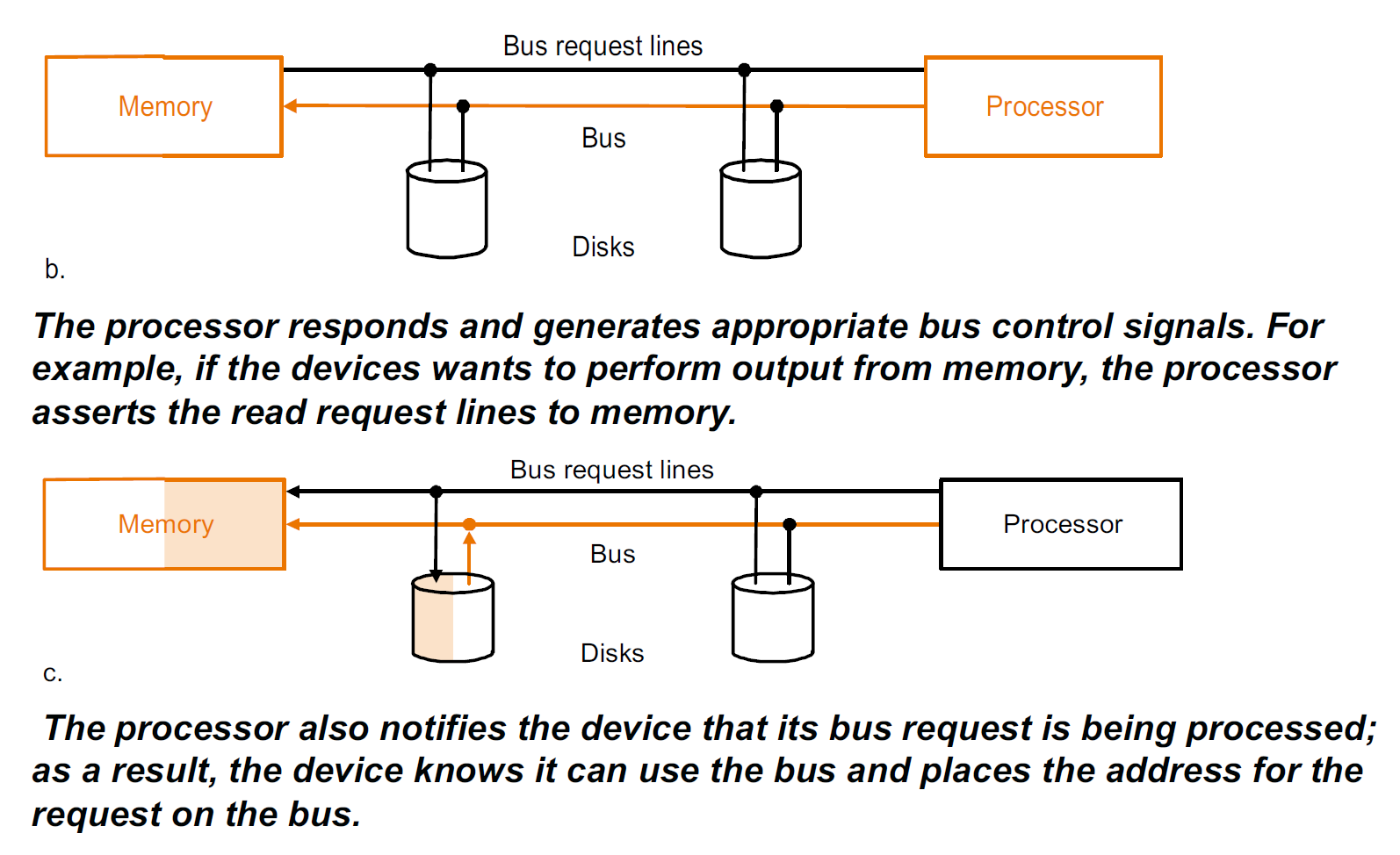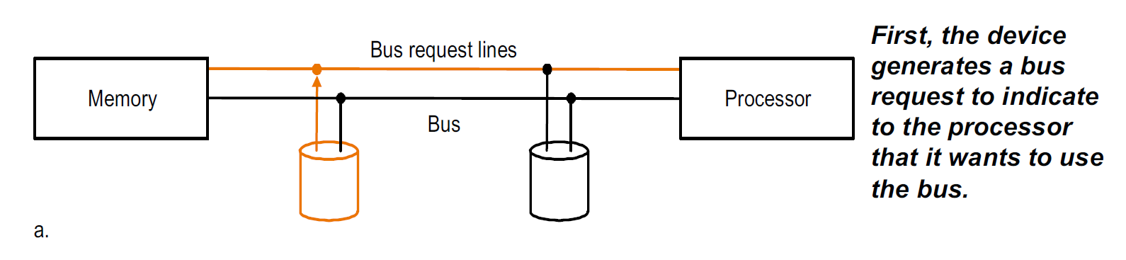 • 为设备分配总线需要考虑的因素:总线优先级、公平性 (fairness)