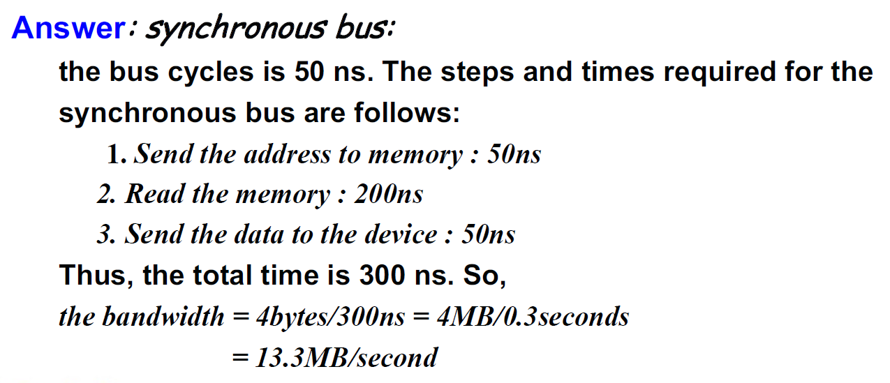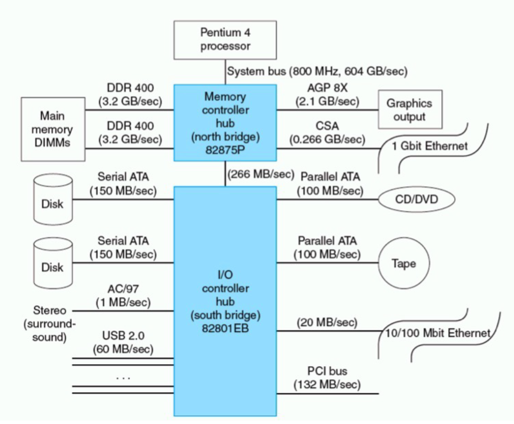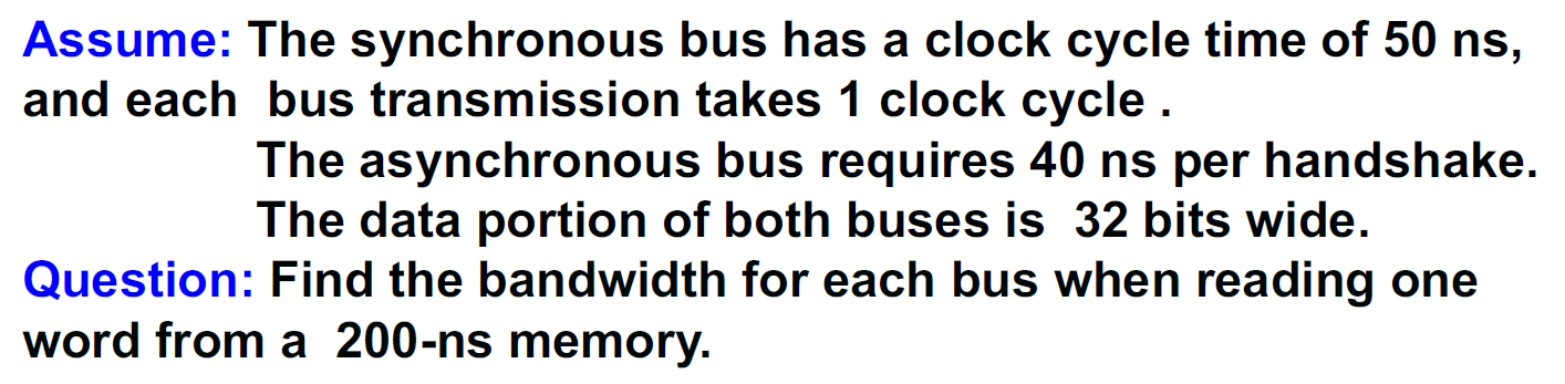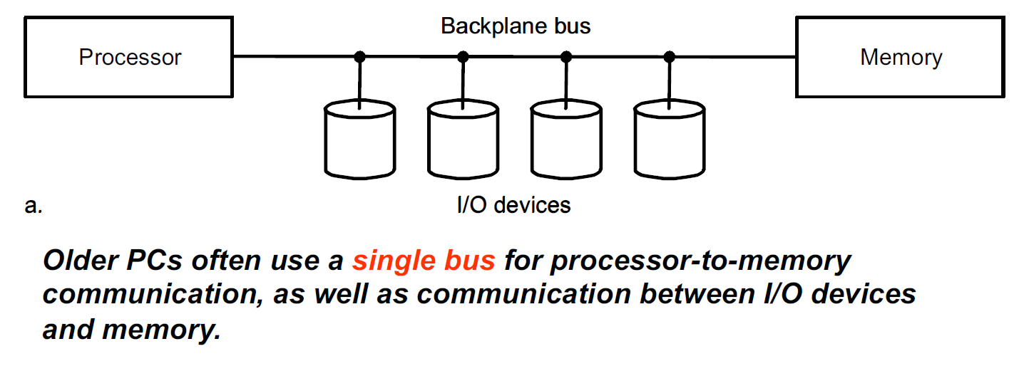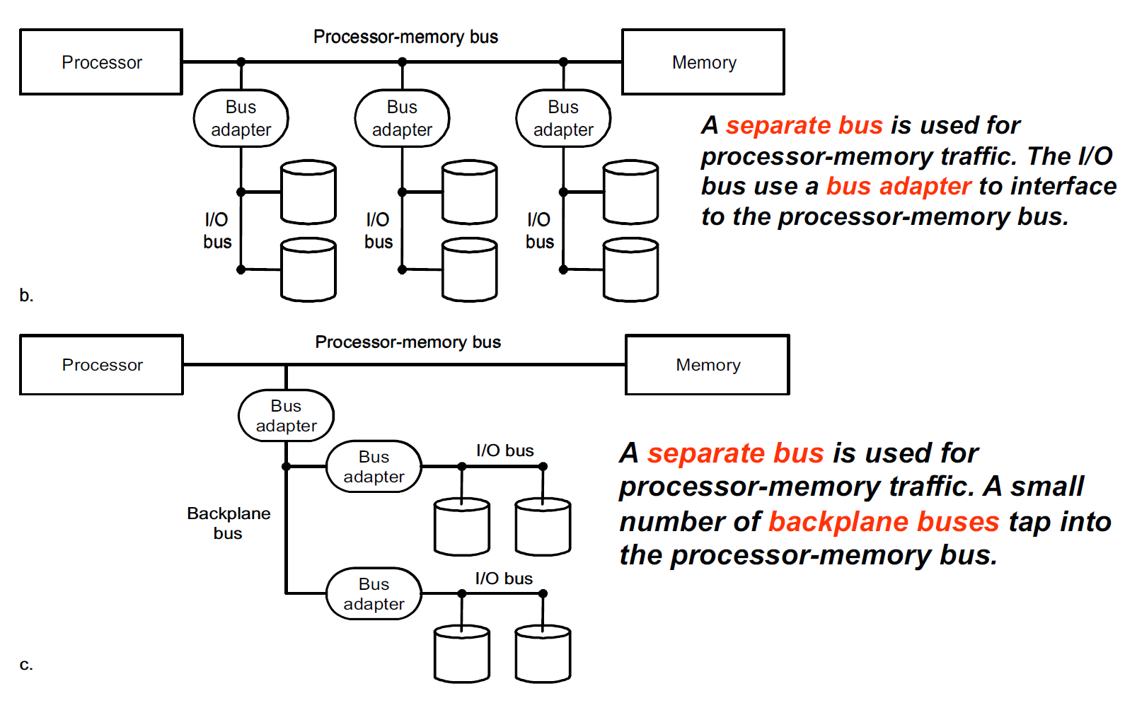 • 同步总线:使用时钟和固定的协议,快而小,但是所有设备需要保持相同的运作速率,且为避免时钟偏斜 (clock skew) 问题,总线需要短一些